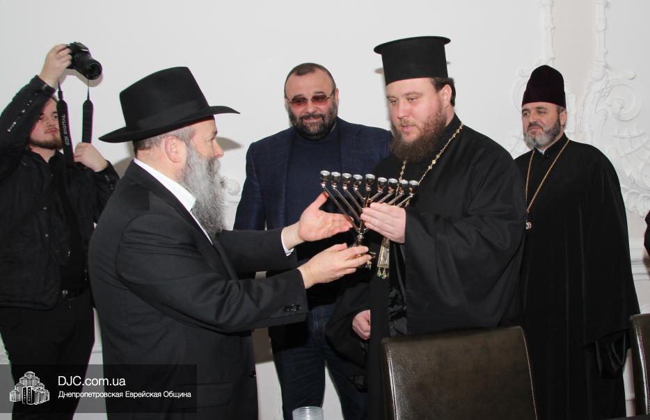 Главный раввин Днепра и региона Шмуэль Каминецкий подарил епископу Симеону серебряную ханукию, как символ распространения духовного света, а новому зданию епархиального управления и резиденции епископа – бирката а-Байт – благословение дома с изображением синагоги «Золотая Роза» и центра «Менора». В свою очередь епископ Симеон подарил раввину коллекционное издание книги о Михайловском златоверхом монастыре – главном символе возрождения украинского православия.