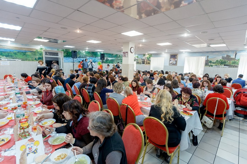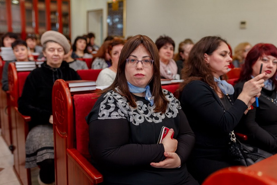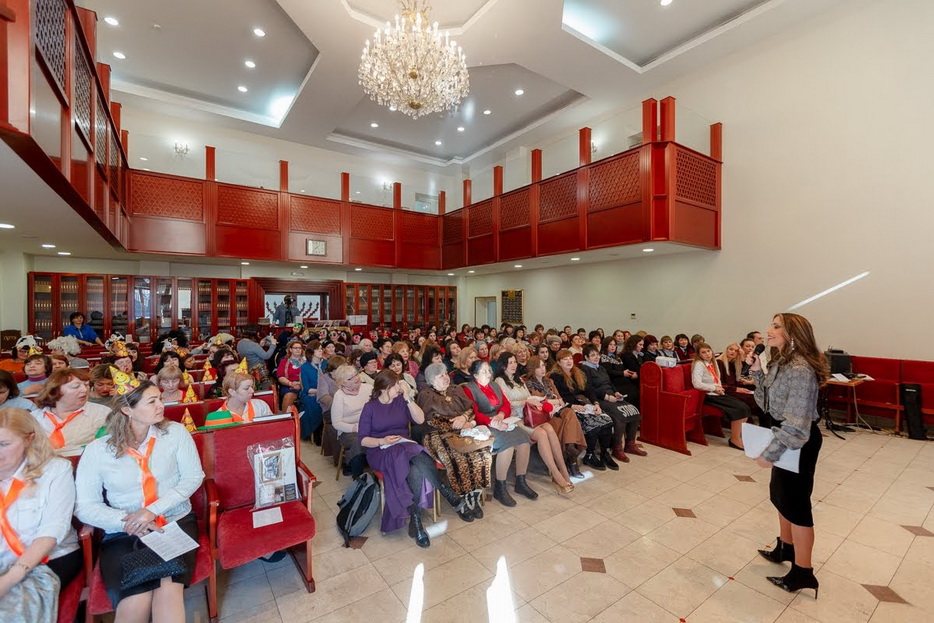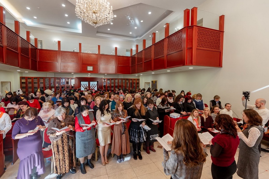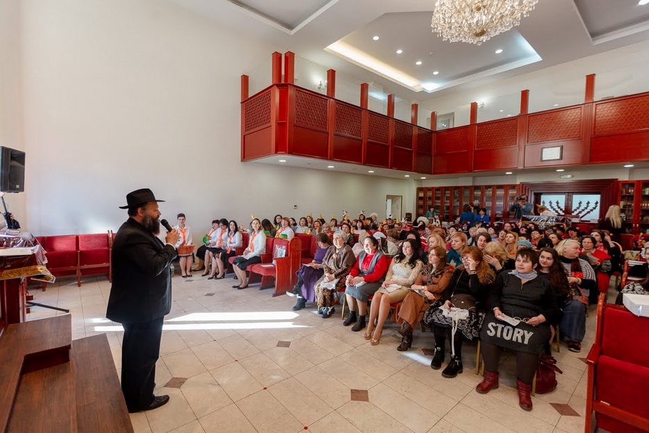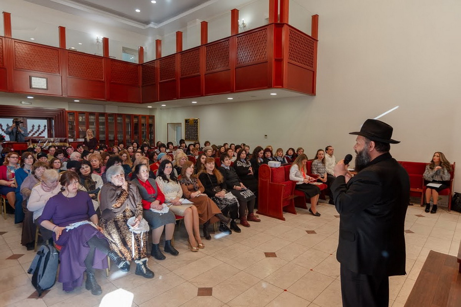 Свыше полутора сотен женщин, принимающих участие в программе «Колель Тора», тепло приветствовал Главный раввин Каменского Леви Стамблер в главном молитвенном зале прекрасной синагоги «Бейт Реувен», которая построена в едином комплексе с общинным центром «Бейт Барух», в здании, которое является копией знаменитой синагоги «770» в Нью-Йорке.
