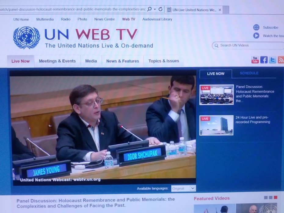 Доктор Игорь Щупак выступил в Штаб-Картире ООН (Нью-Йорк) с докладом в ходе панельной дискуссии на тему «Память о Холокосте и общественные мемориалы: сложности и вызовы перед прошлым», которая состоялась 2 ноября.