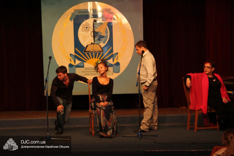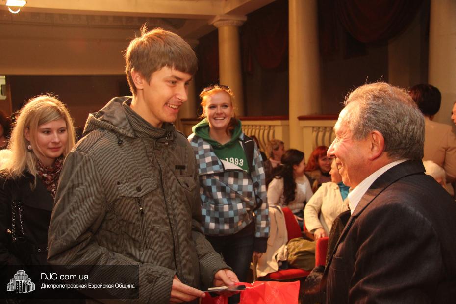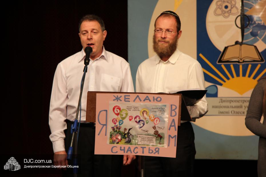 Радостное событие – 65-тилетний юбилей Геры (официально – Григория Исааковича) Скорохода, математика и поэта, кавеэнщика и знаменитого преподавателя и наставника, второго директора еврейской школы Днепропетровска «Ор Авнер Хабад-Любавич» им. Леви-Ицхака Шнеерсона и поклонника всех по-настоящему творческих личностей Днепропетровска, отмечалось сборным концертом в родных стенах Дворца студентов (когда-то им. Ю. Гагарина, а теперь Университета им. Олеся Гончара). Формат концерта был неформально-математическим «45 стишков + 20 песенок = 65 лет».