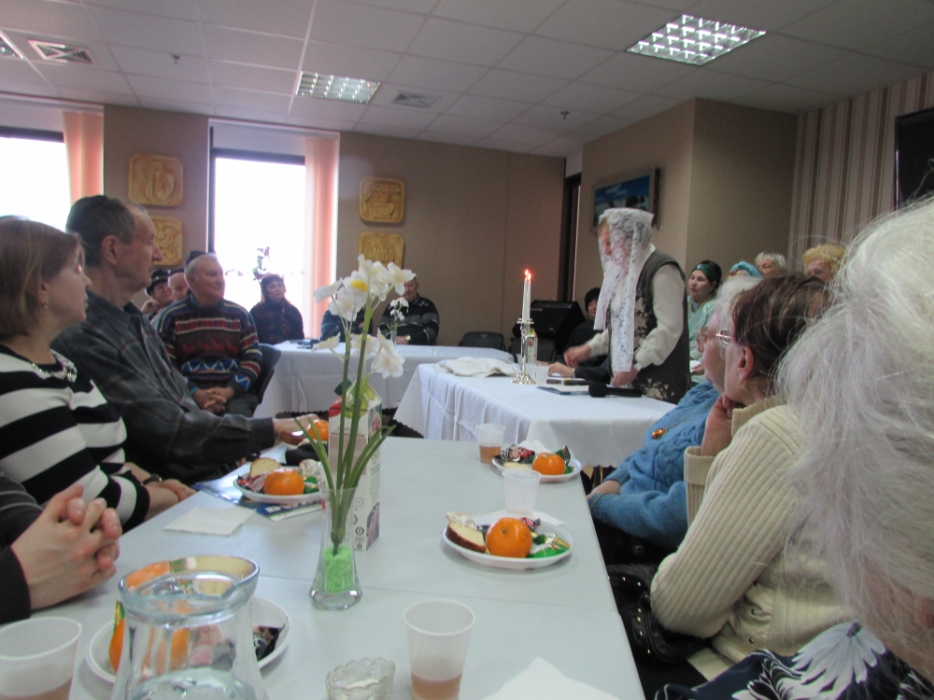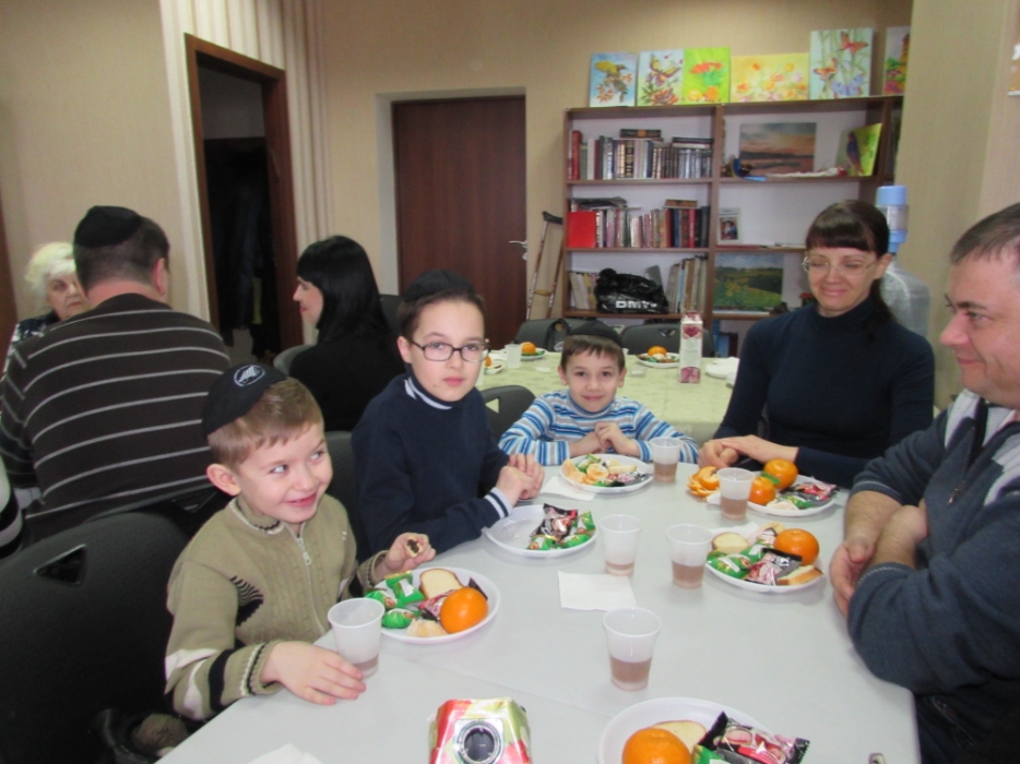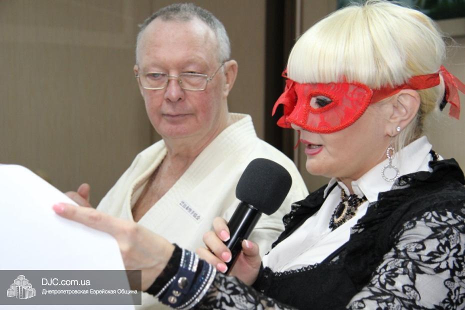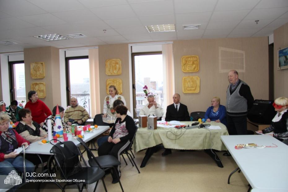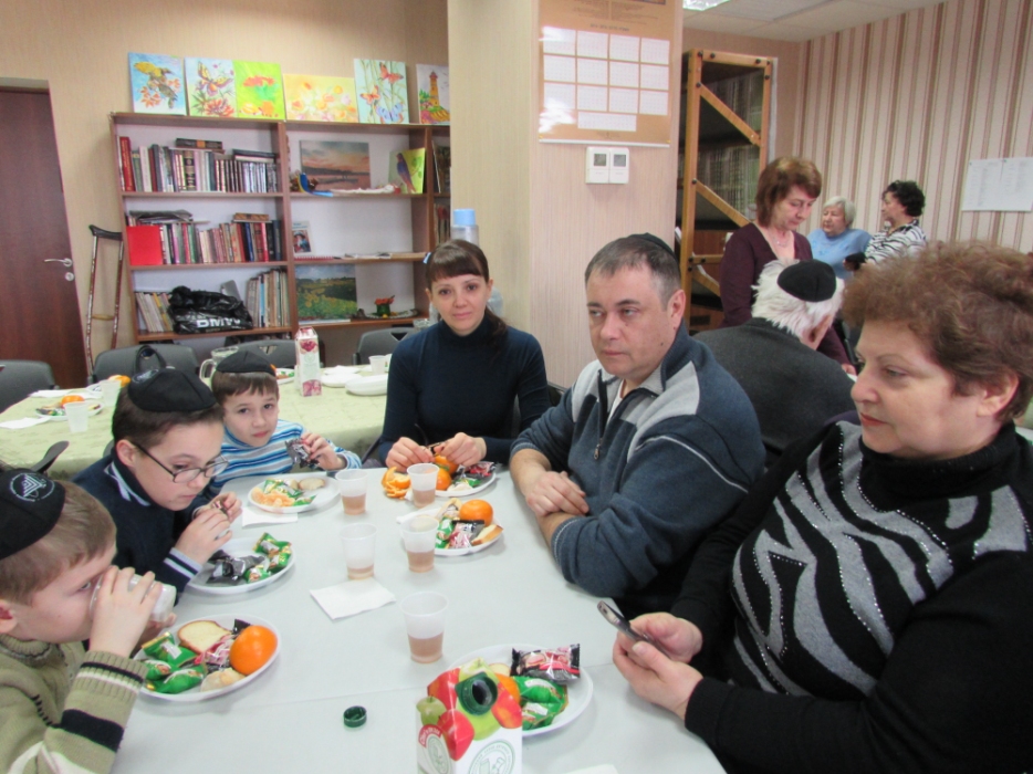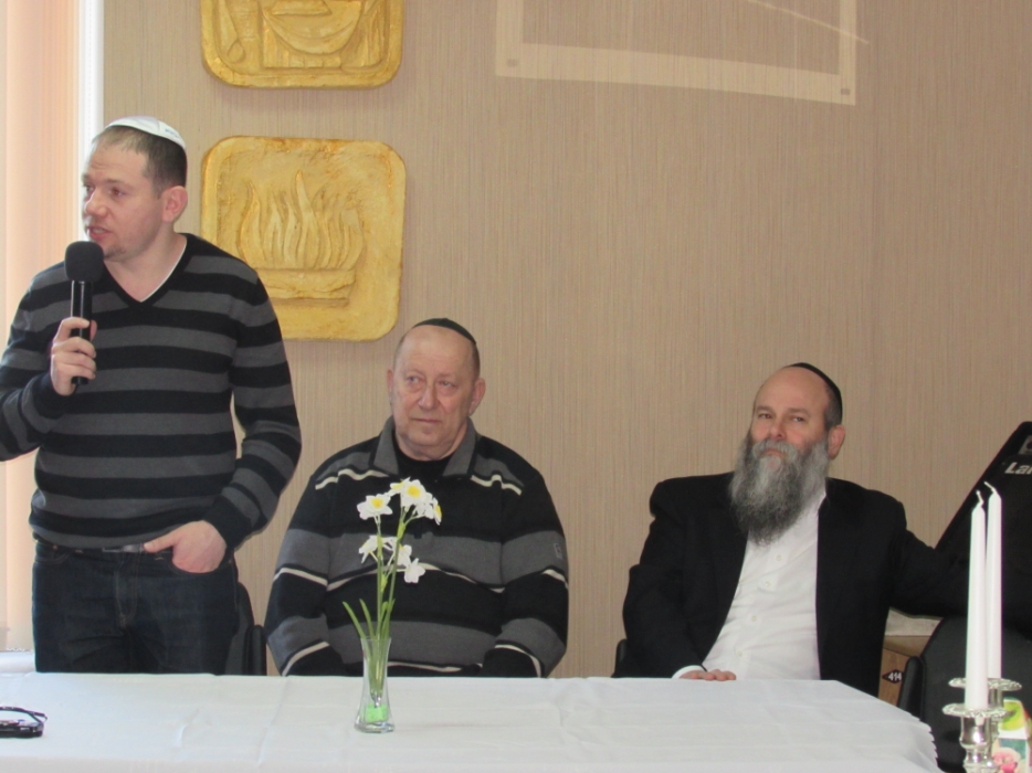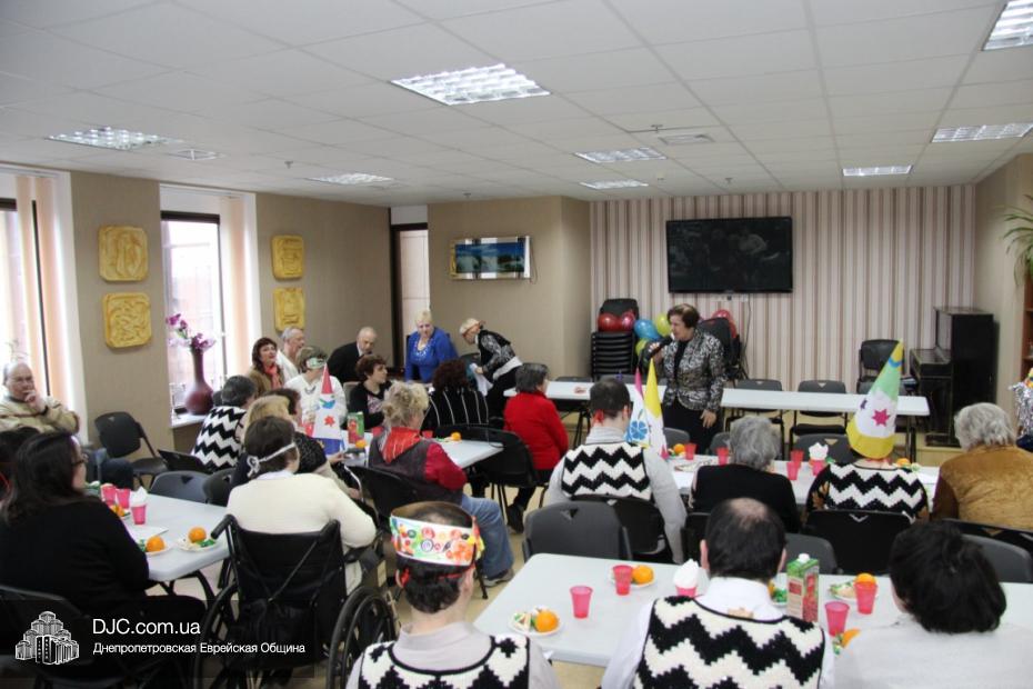 Вначале в клубе «Фрейлахс» была организованна пуримская трапеза и концертная программа для беженцев из восточных областей Украины, подопечных Хеседов Донецка и Луганска, которые, благодаря «Джоинту» и Еврейской общине, смогли обрести теплый и безопасный временный дом в нашей области. Поприветствовать этих людей, переживших ужасы вооруженного конфликта, бесчинства боевиков и террористов, пришли Главный раввин Днепропетровска и региона Шмуэль Каминецкий и председатель правления «Джоинт» в Восточной Украине Йонатан Лейфер. Они, вместе с директором «Хеседа-Менахем» Анатолием Плескачевским, пожелали этим мужественным людям, чтобы все их страдания и тревоги остались в прошлом, чтобы они испытали большую радость от пуримских чудес, чтобы восстановилась в их городах нормальная жизнь и они смогли вновь активно участвовать в возрождении еврейской жизни своих общин.