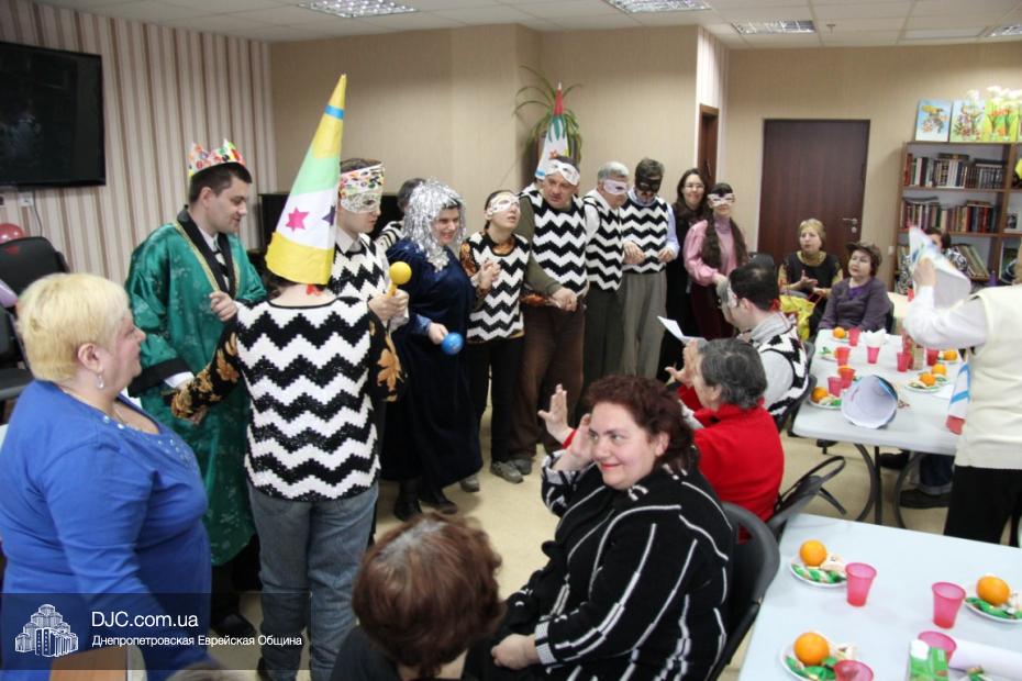 Через несколько дней в клубе «Фрейлахс» состоялся праздник для участников программы «Ядид», объединяющей людей с ограниченными возможностями и специальными потребностями, имеющими инвалидность, в связи с тяжелыми хроническими заболеваниями. В этом празднике участвовали и сами ребята, и волонтеры, и специалисты, которые работают с ядидовцами. Руководитель «Ядид» Виктория Опаленко особо отметила, что ребята сами подготовили маски и костюмы, создали прекрасный Пуримшпиль и проявили очень много креатива, вложив энергию, тепло своих сердец и всю душу в этот проект.