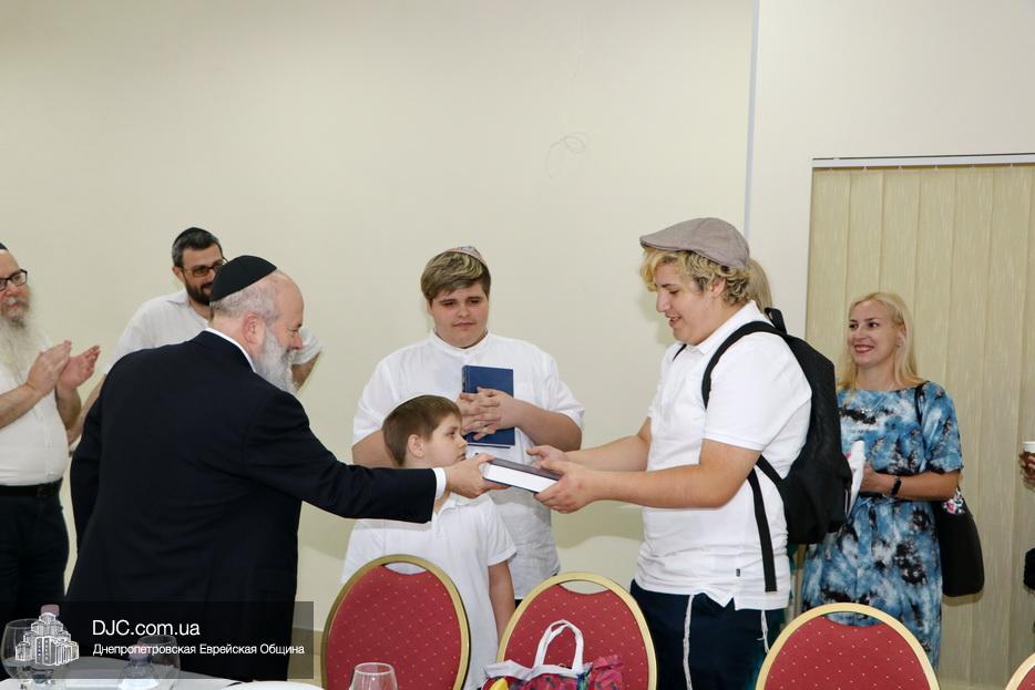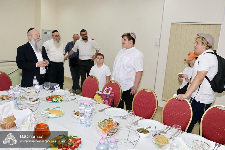 Сразу после церемонии состоялась заповеданная трапеза «сеудат мицва», участие в которой является особой заслугой, на которой Главный раввин Днепра и региона Шмуэль Каминецкий поздравил Даниэля Медяника и Йосифа Ицхака Жилина с таким важным днем и подарил каждому «Сидур» и дал благословение бар-мицвам на добрые дела и хорошую учебу.
