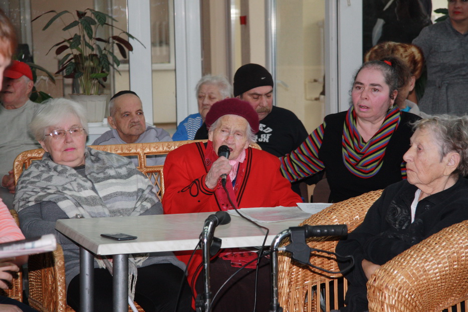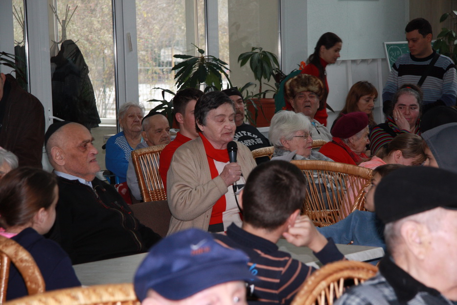 «Это получился настоящий праздничный концерт – выступило прекрасное трио «Акфа», нашей талантливой Танечки Каплунской, Анечка Когтянц спела знаменитую германовскую «Надежду», а Настенька и Владик Залогины прекрасно танцевали, – рассказала нашему сайту Ида Самойловна Цыпкина, – мы ответили им с большим вдохновением – я спела «Аидише мамэ», мой почин подхватили и другие наши жильцы, некоторые, кто мог конечно, даже танцевали вместе с детьми их фирменный танец «Адама», что означает «Земля». Но главное это было общение, душевный контакт, возможность нам, старикам, пообщаться с теми, кто нам годиться даже не во внуки, а в правнуки и правнучки. Это была прекрасная встреча, но только очень короткая. Мы с нетерпением ждем Танечку Каплунскую, Вику Плинер и их чудесных детей к нам в гости еще и еще».
