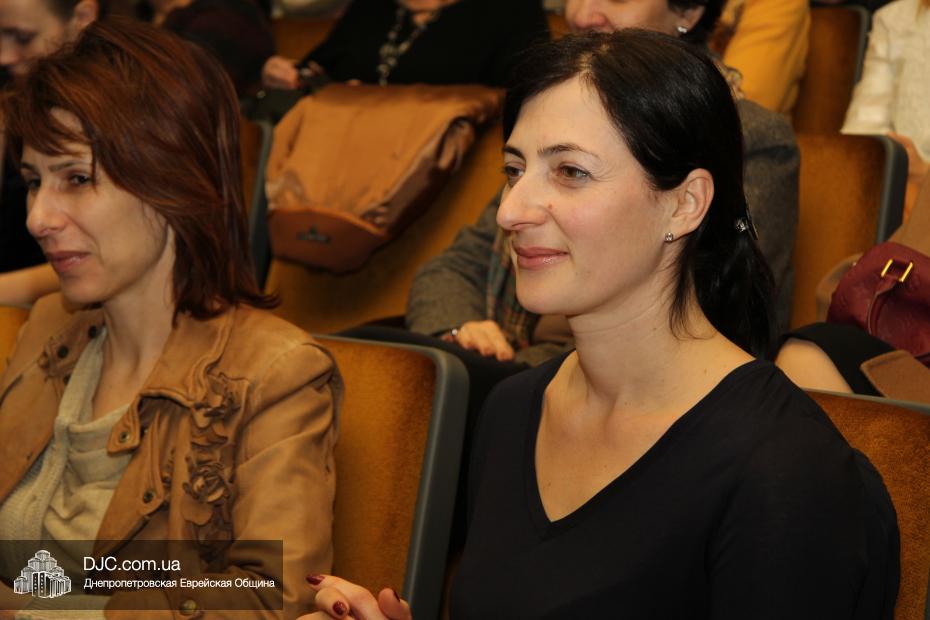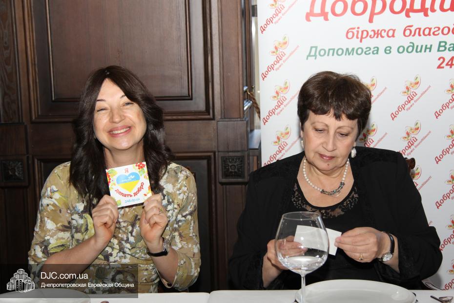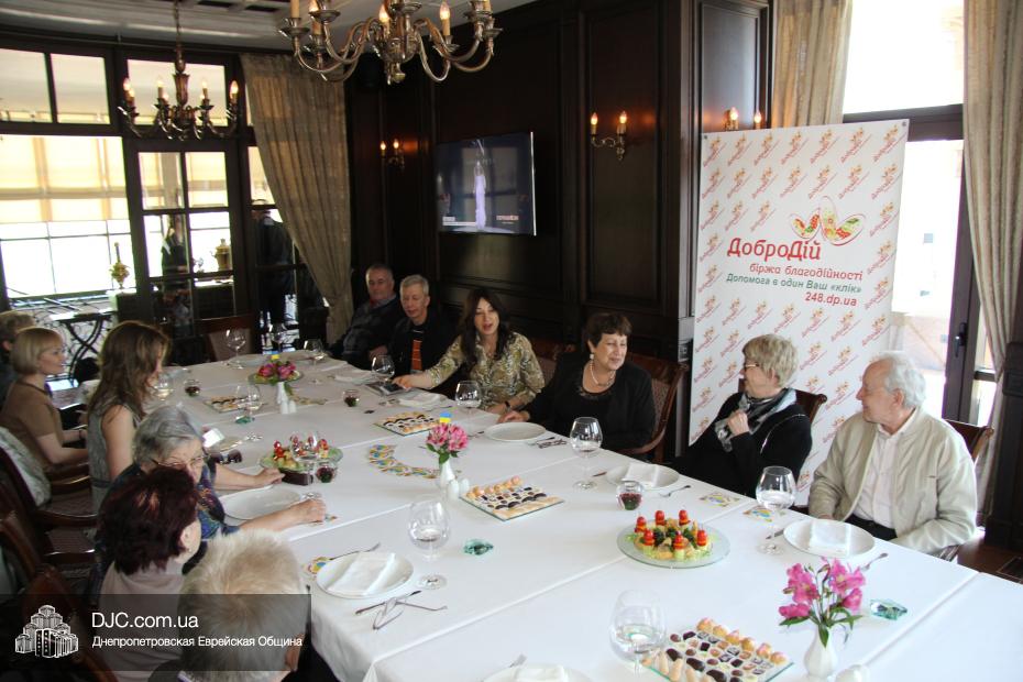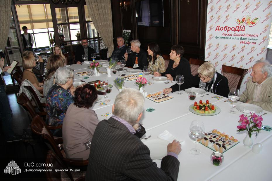 Местом проведения первого, проходившего под эгидой биржи благотворительности «ДоброДій», была избрана банкетная зала кафе-ресторана «Артист» на Соборной площади. Стоимость участия в нем была намерено недемократична, что придавало всему действию ауру элитарности и утонченности. Беседа намерено и тщательно не касалась политики – ни украинской, ни израильской –  и в основном сосредоточилась на русскоязычной еврейской литературе и ее культовых фигурах, и Игорь Губерман, хоть и не был явлен во плоти, был полноправным участником встречи. Дина Рубина была явно польщена тем, как ее любят в Днепропетровске, как легко цитируют не только бестселлеры, но и ранние произведения, как любят в ней, то не явное, приглушенное интеллигентностью, «аидише начало», которое, хотя и является поводом для писательской самоиронии, все же, и есть именно то, что отличает Дину Ильиничну от сонма умных, цинично-интеллектуальных русских писательниц, постаравшихся совместить в себе черты Цветаевой, Ахматовой и Раневской, сдобренные щедрой рукой обаянием Иоанны Хмелевской.