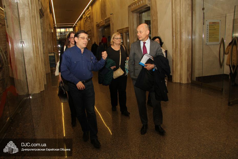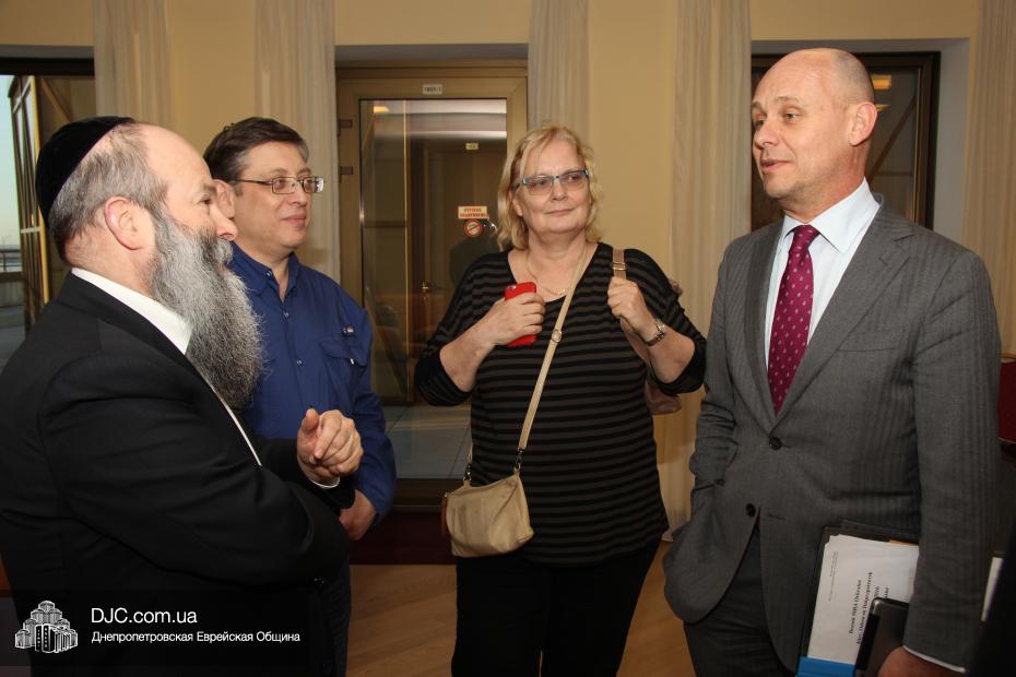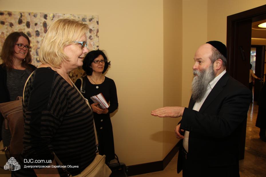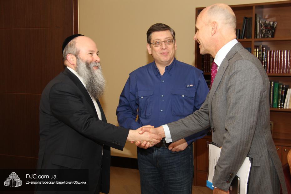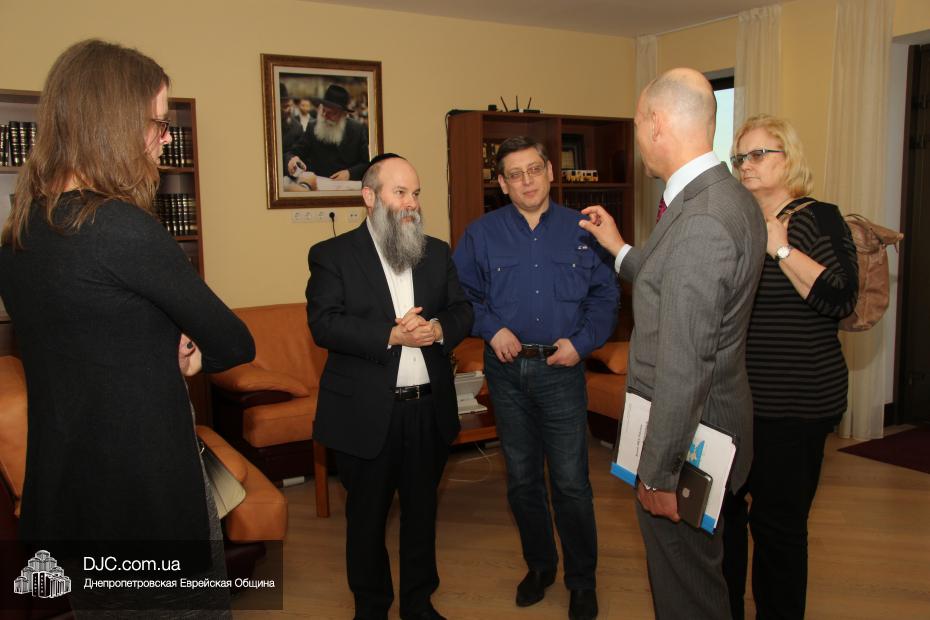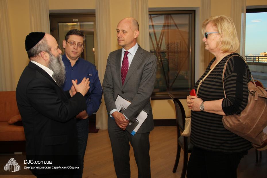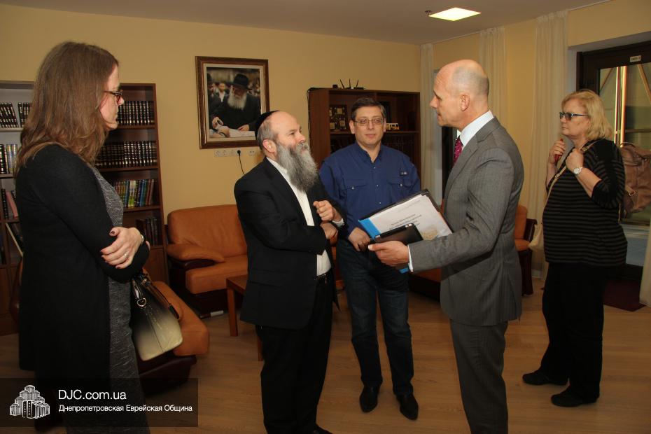 Днепропетровскую еврейскую общину с кратким визитом посетили высокопоставленные дипломаты из Нидерландов – Посол Королевства Нидерландов по правам человека, господин Кейс ван Баар (Kees van Baar, Human Rights Ambassador of the Kingdom of the Netherlands); сотрудник политического отдела Европейского департамента, Министерства иностранных дел Нидерландов, Гаага, Минке ван дер Сар (Minke van der Sar, Policy Officer at Ministry of Foreign Affairs, Netherlands, Hague); Первый секретарь Посольства Королевства Нидерландов в Украине Рини Бюс (Riny Bus, Deputy Ambassador); сотрудник политического отдела Екатерина Осташкова.