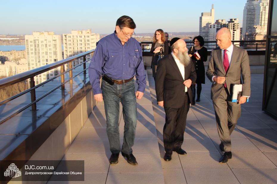 Представительная делегация ознакомилась с еврейским возрождением в Днепропетровске, осмотрела центр «Менора» и встретилась с Главным раввином Днепропетровска и региона Шмуэлем Каминецким. На встрече с раввином Каминецким обсуждался широкий спектр вопросов жизни в Украине, перспективные направления укрепления и расширения связей и другие актуальные вопросы.