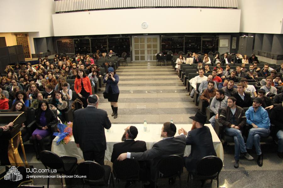 Моше Михлис сказал, что его очень радует, что в Днепропетровске столько молодых людей, которые хотят учиться, знать больше о себе, о своих традициях, о своем народе, а также рассказал о своем жизненном пути, о том, как он вместе с семьей в возрасте одиннадцати лет совершил алию в Израиль, о сложности жизни новых репатриантов и о том, как и почему он стал директором проекта «Хефциба».
