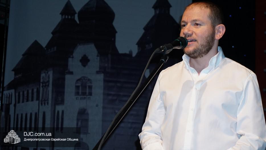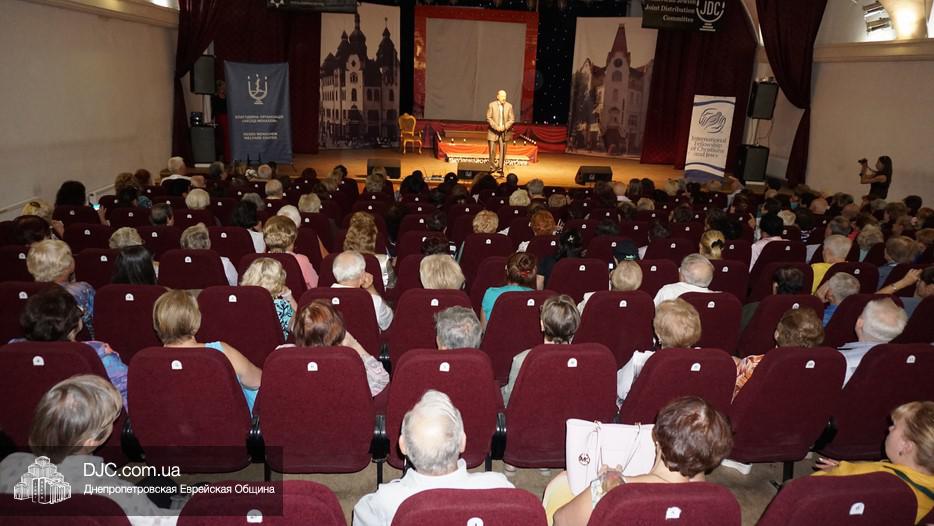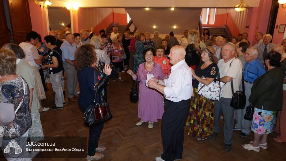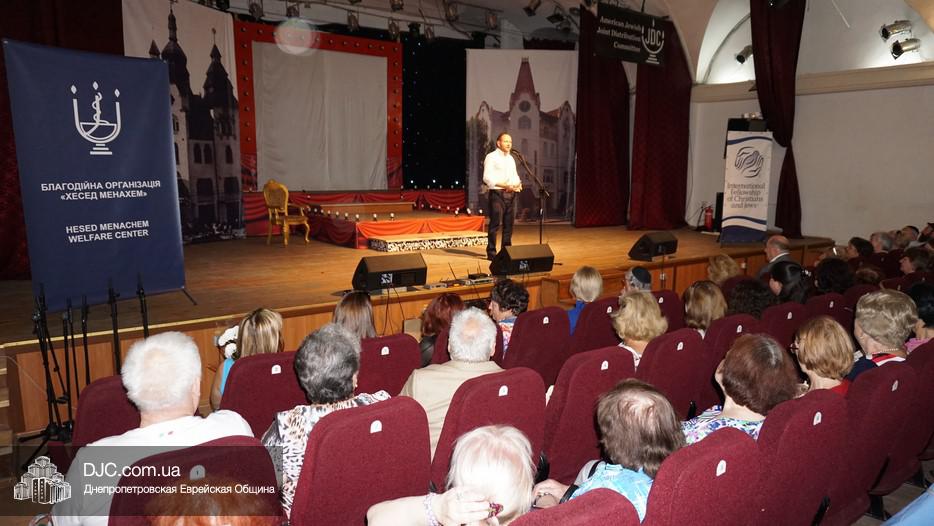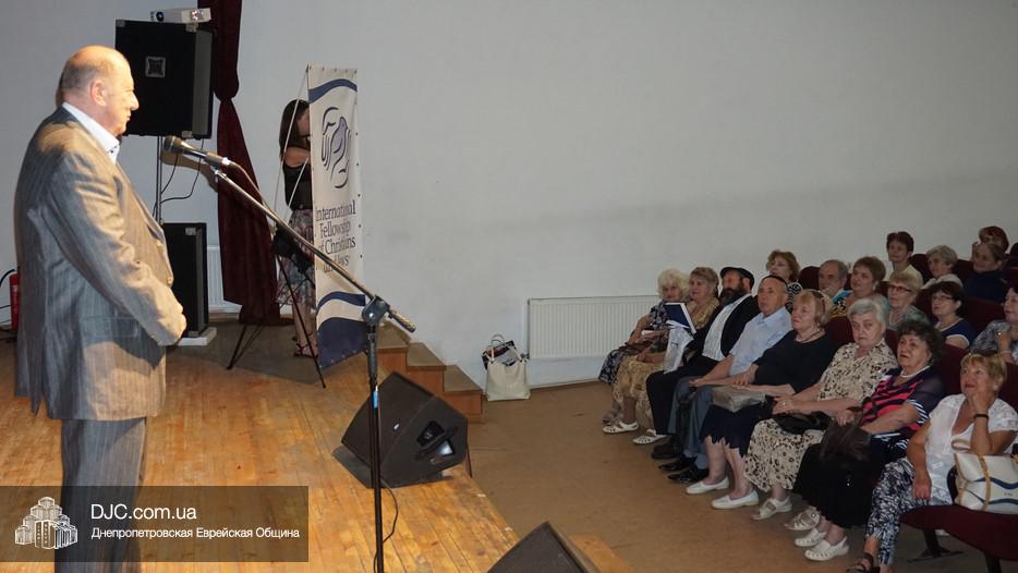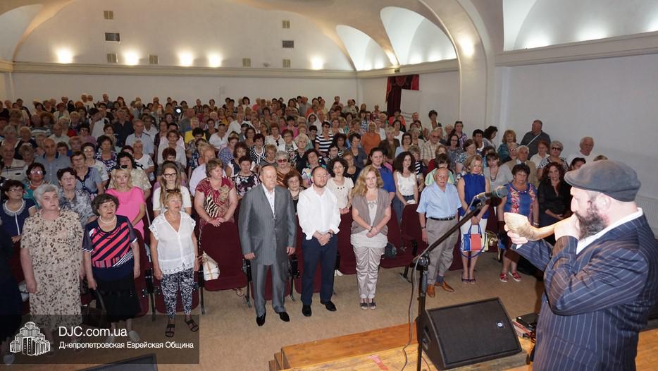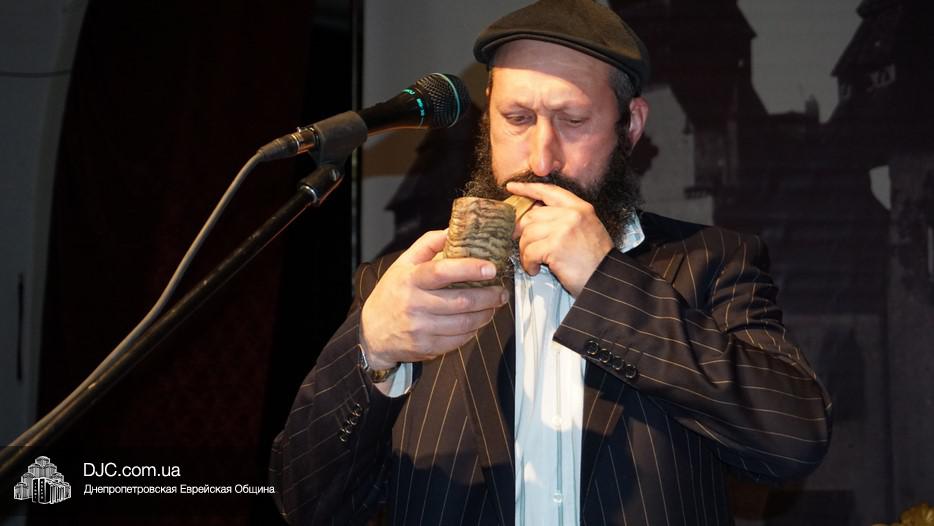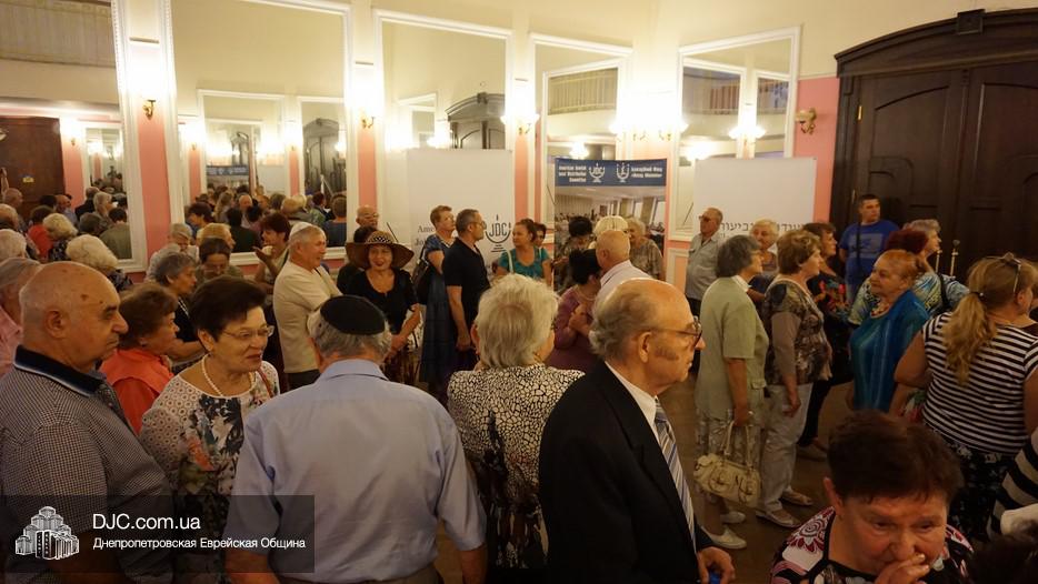 В фойе была организована небольшая выставка, а перед началом музыкального представления пожилых людей с наступающими праздниками тепло поздравил директор Центра «Джоинт» в г. Днепр Йони Лейфер и директор «Хеседа Менахем» Анатолий Плекачевский. Затем Реувен Мильман провел обряд трубления в шофар в месяц элул.