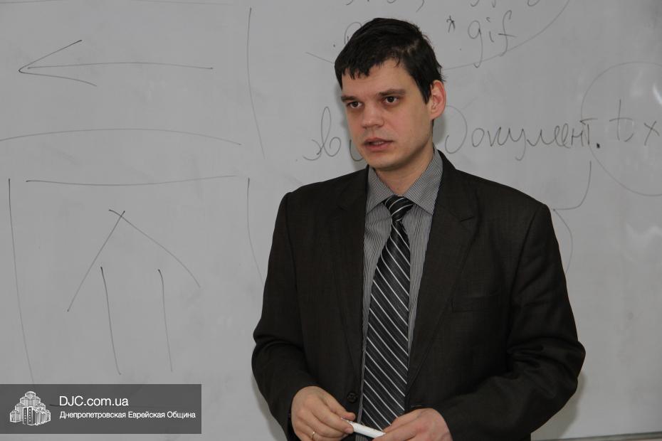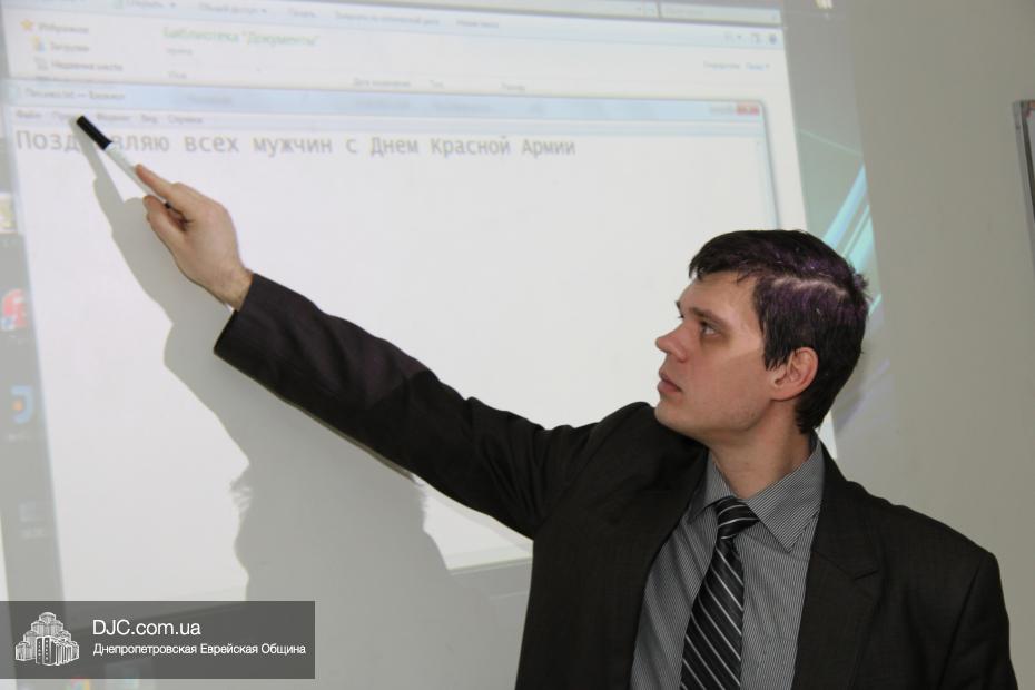Занятие для подопечных «Хеседа» проводит кандидат технических наук Максим Шаптала, который, используя свою авторскую методику и в адаптированной форме, за десять занятий научит пожилых людей способам управлять базовыми компьютерными процессами, умению правильно использовать машину и некоторые ее периферийные устройства и тому, как работать с рядом программ и систем.