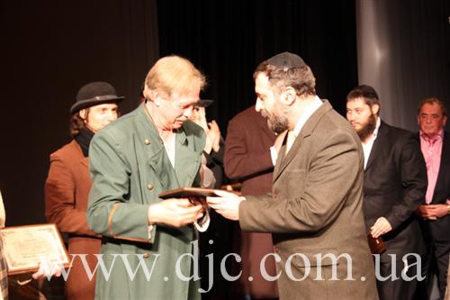 Еврейская община Днепропетровска наградила памятными знаками «За значительный вклад в развитие еврейской культуры» создателей и ведущих артистов спектакля «Мир дому твоему», по произведениям Шолом-Алейхема, который с огромным успехом второй сезон идет на сцене театра русской драмы имени Горького в Днепропетровске, является одним из основных в гастрольной деятельности театра по Украине и за рубежом, и который был признан главным театральным событием года на всеукраинском конкуре в Кировограде.