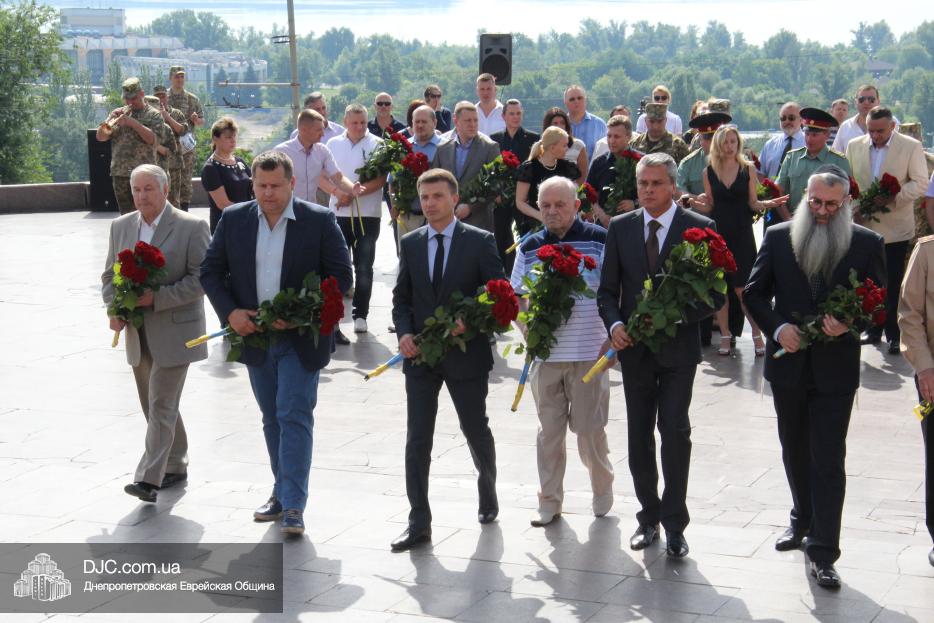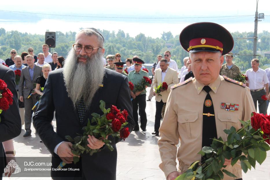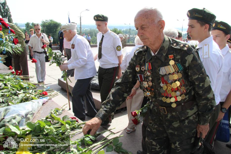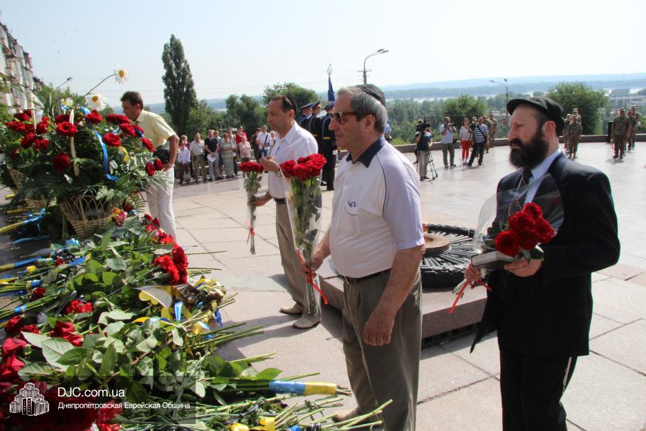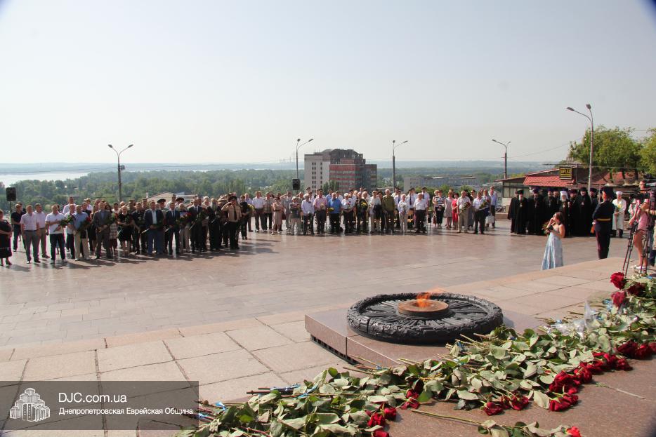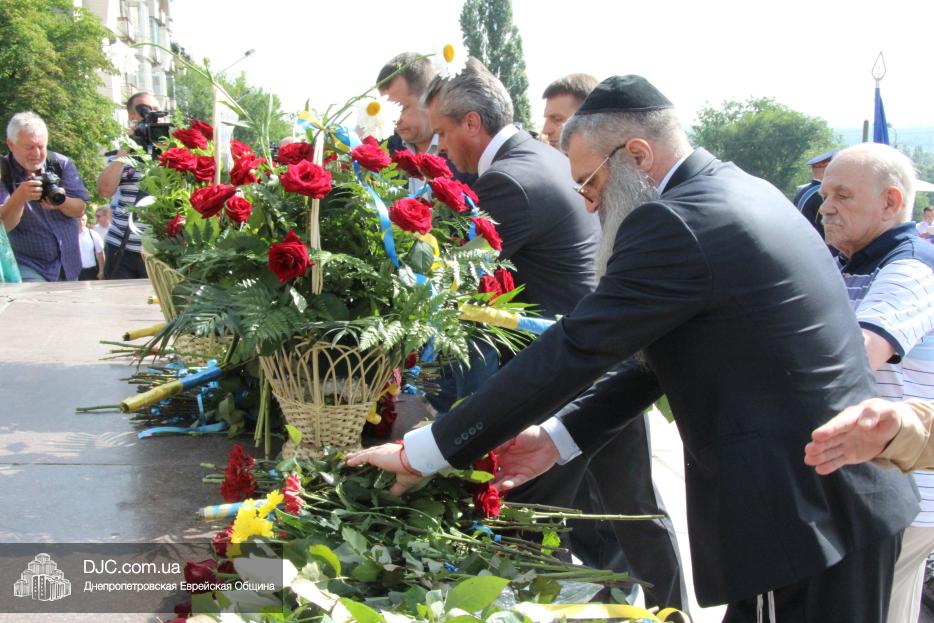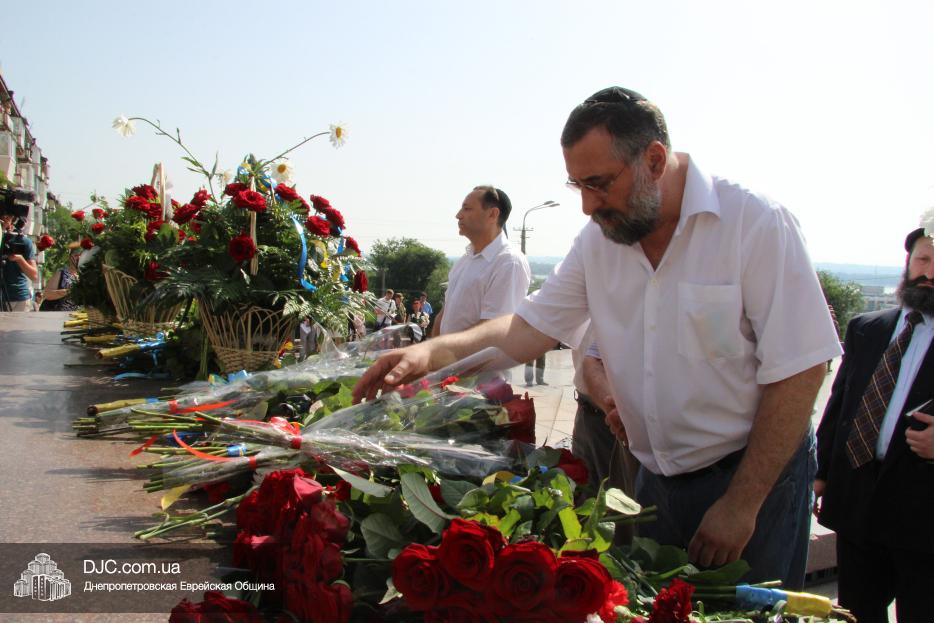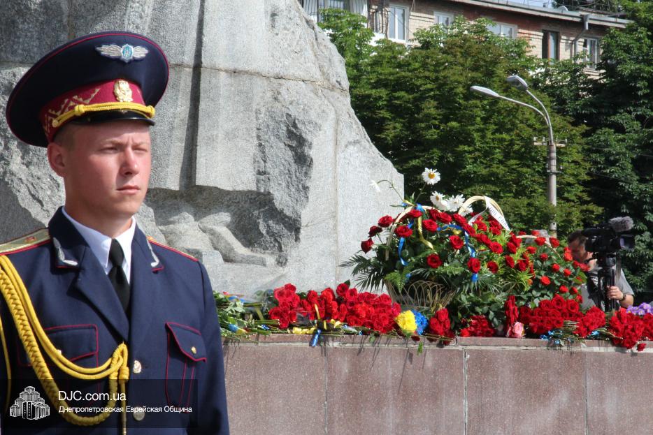 Еврейская община Днепра приняла участие в городских мероприятиях, посвященных Дню скорби и чествования памяти жертв войны – возложении цветов к монументу Вечной Славы, расположенному над Днепром, в начале проспекта Дмитрия Яворницкого.