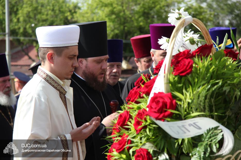 Вместе с представителями других конфессий – христианских и мусульманских, делегация еврейской общины, которую возглавляли управляющий делами Александр Фридкис и председатель Совета евреев-ветеранов Соломон Флакс, возложила цветы к Вечному огню у подножия монумента.