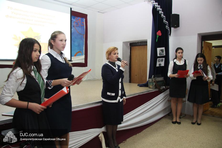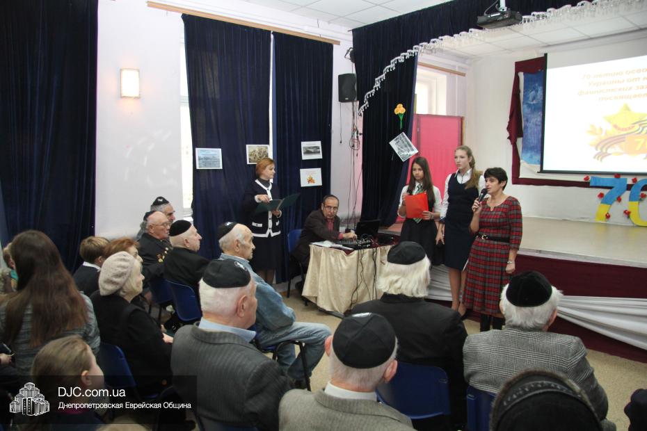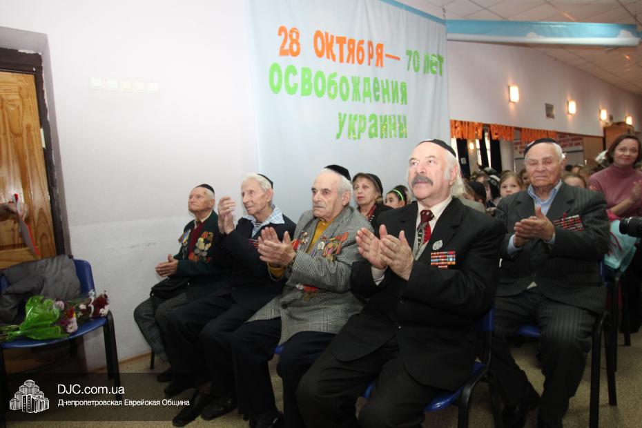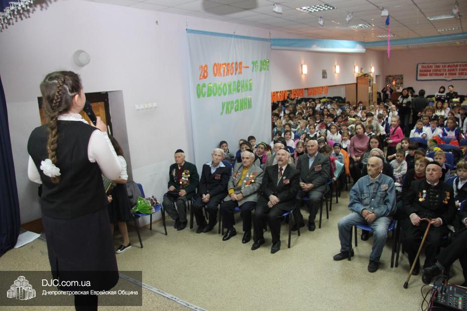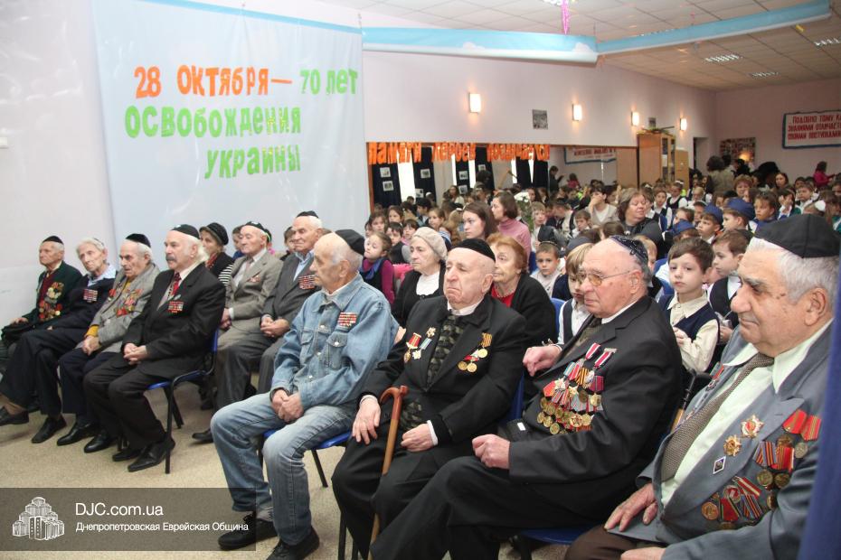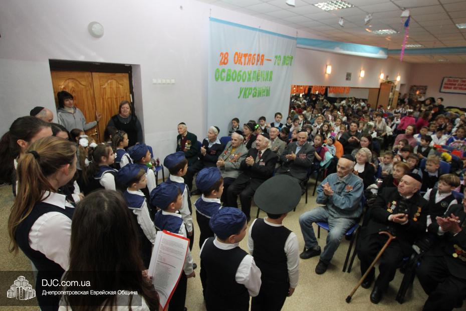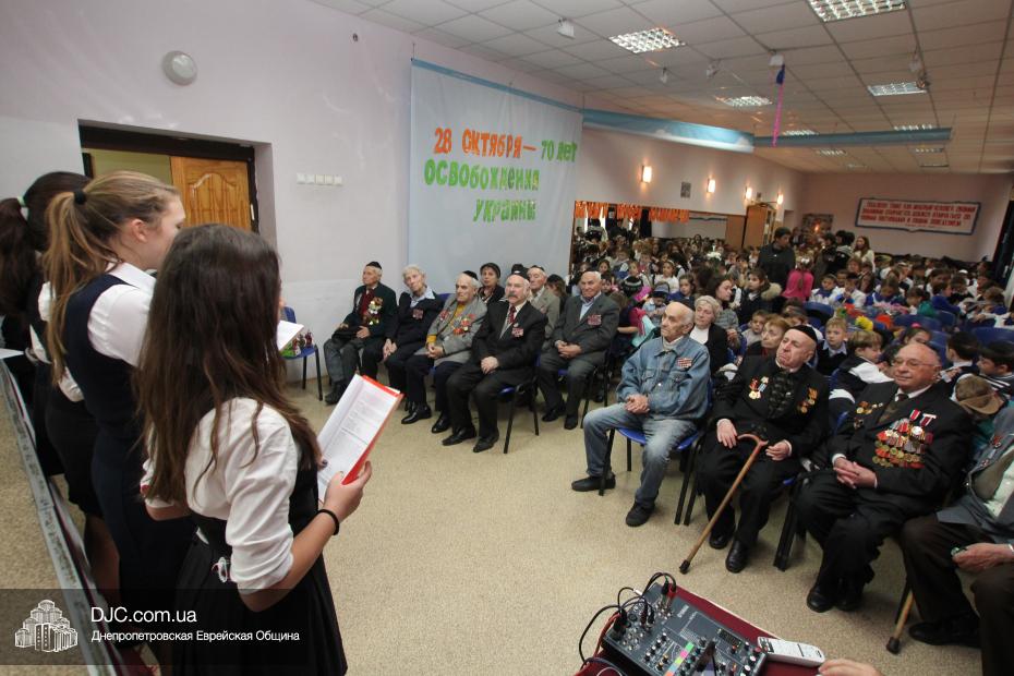Накануне двух знаменательных дат – 71-й годовщины освобождения Днепропетровска и 70-летия освобождения всей Украины от нацистских оккупантов – в еврейской школе Днепропетровска «Ор Авнер Хабад Любавич» имени Леви-Ицхака Шнеерсона прошел праздничный концерт. Его главными гостями стали члены днепропетровского Совета евреев-ветеранов, делегацию которых возглавил председатель Совета Соломон Киселевич Флакс.