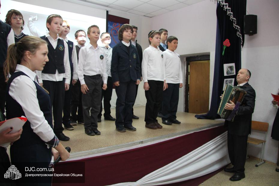 Кульминацией праздничного мероприятия стало выступление школьного вокально-танцевального коллектива «Голдене Киндерлах». «Золотые дети» еврейской школы, вместе со своими руководителями Яковом Роговым и Михаэлем Лифшицем, исполнили легендарную, любимую многими поколениями композицию «Я люблю тебя, жизнь!» (Стихи Константина Ваншенкинa, музыка Эдуарда Колмановского) и песню о родном городе «Днепропетровск–золотые рассветы» (Валентина Кондратьева на стихи Павла Кашаева).
