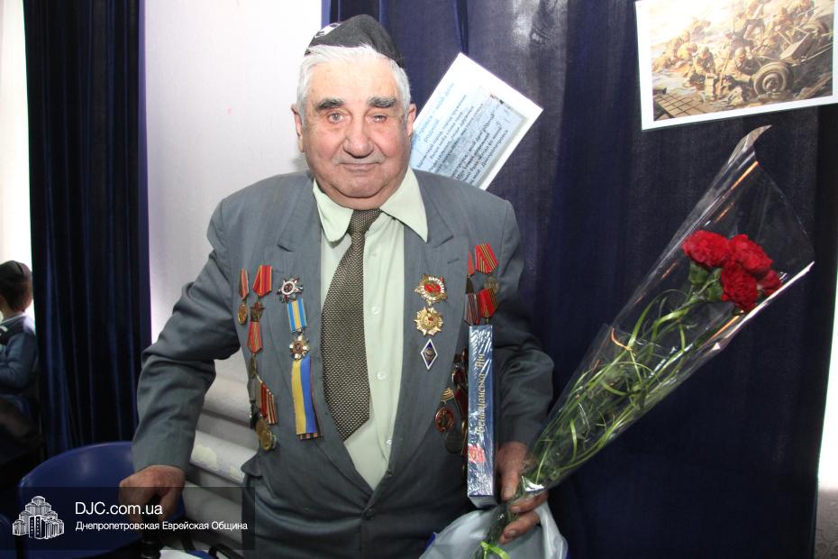 Затем слово было предоставлено председателю Совета евреев-ветеранов Соломону Флаксу. Он искренне, от всего сердца поблагодарил ребят и их учителей за то, что они сохраняют память о трагических и героических событиях военных лет и не забывают о том подвиге, который совершили их прадеды и деды для того, чтобы следующие поколения могли жить под мирным небом. «Я надеюсь, что то, что сегодня происходит на нашей родной украинской земле, закончится. Мы все молим Вс-вышнего о том, чтобы не было войны, чтобы вы все жили в мире и могли радоваться своему детству, юности, чтобы никогда вам, как нам, не пришлось брать в руки оружие и защищать свой дом, свою Родину», – отметил Соломон Киселевич.