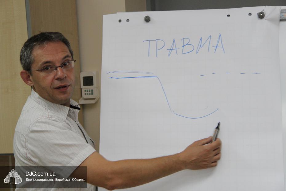 На семинаре работали высококвалифицированные специалисты из израильской «Коалиции по работе с травмой», объединяющей различные израильские структуры оказывающие помощь людям, оказавшимся в критической ситуации. В Днепропетровск приехали представители двух организаций, входящих в коалицию – Александр Гершанов, представляющий израильский центр помощи в кризисных ситуациях «Сэла», и Александр Остроброд из организации «Наталь». До этого они провели подобные семинары в Кивев и Харькове, а в ближайшее время другая группа специалистов проведет аналогичный тренинг в Одессе.