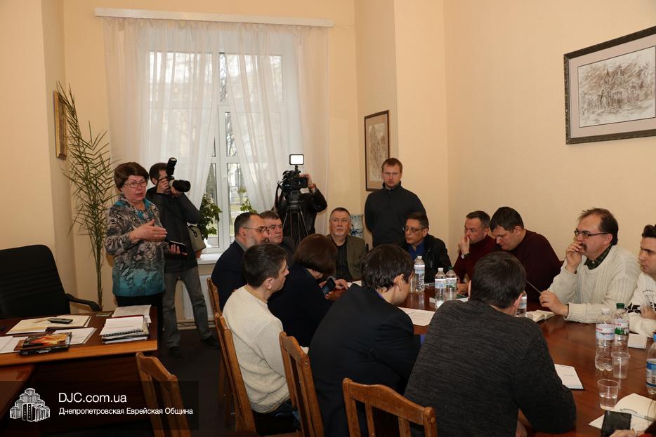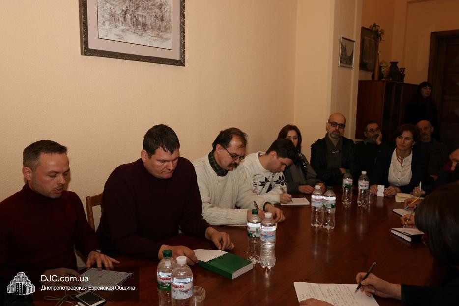 В первом Совещании, которое взяло на себя формулировку постановки проблемы и наметило самые общие черты направлений реэкспозиции, активно участвовали и директор УИИХ «Ткума» и Еврейского Музея доктор Игорь Щупак, и руководитель научного отдела «Ткумы» доктор Егор Врадий, и ведущие научные сотрудники Еврейского Музея – Валентин Рыбалка, Ирина Радченко и Марина Стрильчук. В состав рабочей группы были включены киевские и днепровские специалисты, среди них такие известные эксперты, как профессор Владислав Гриневич, доктор Александр Зинченко, доктор Василий Павлов, Виктор Гукайло, Юрий Фаныгин, доктор Олег Репан и Валентин Старостин.