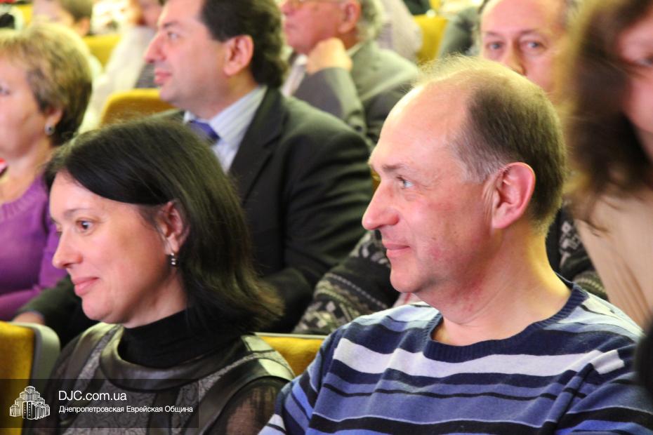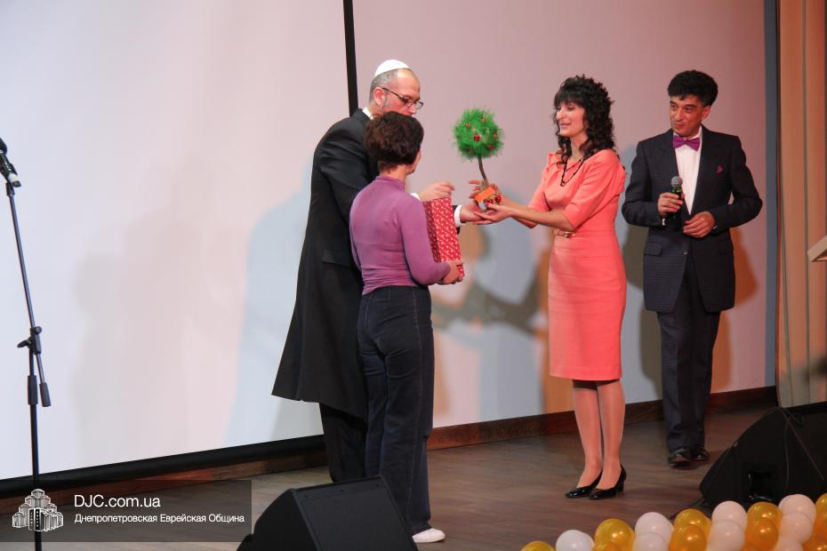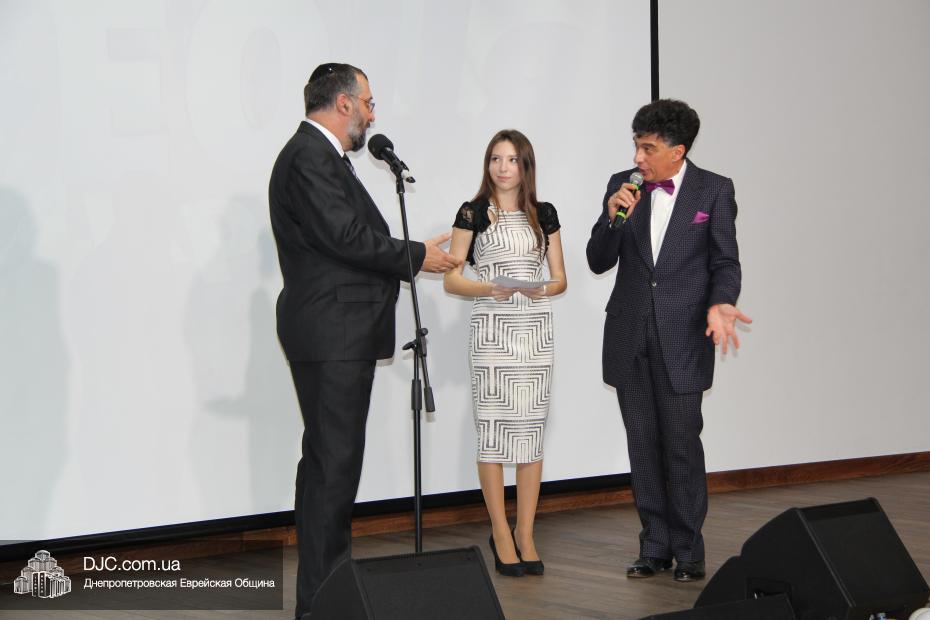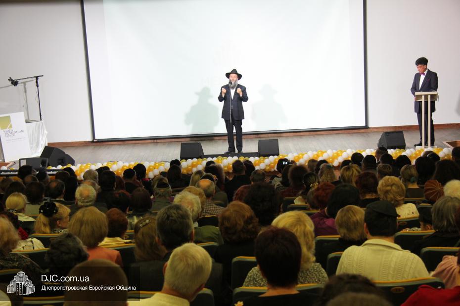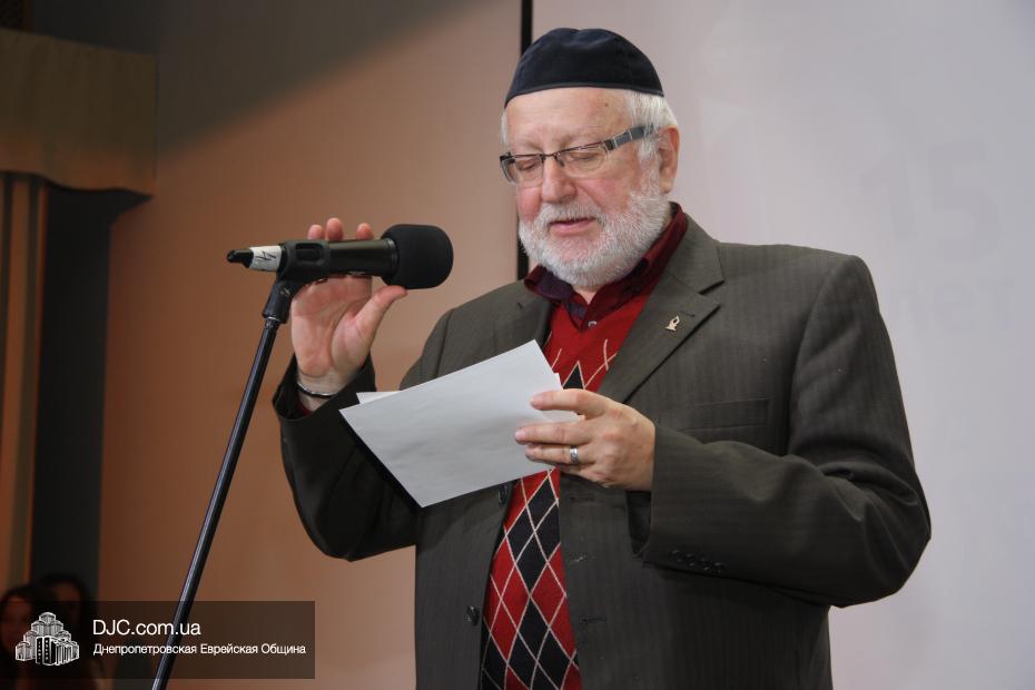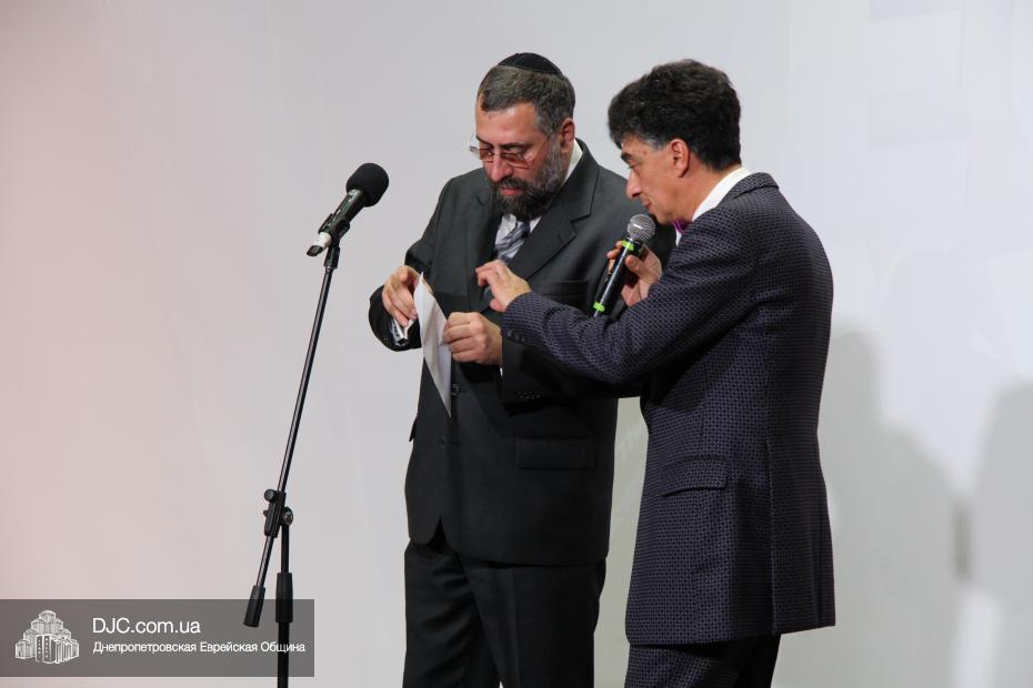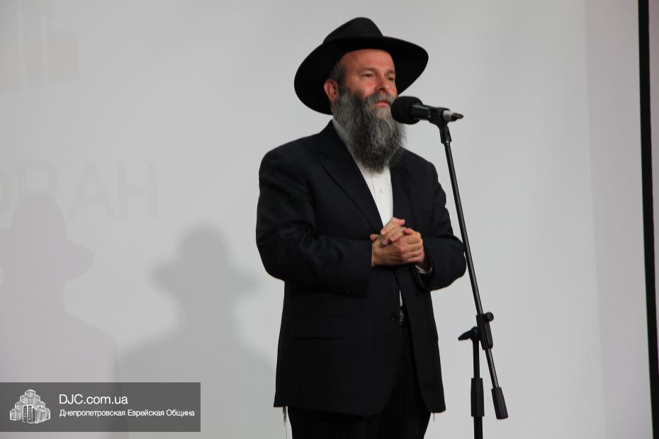 Затем ведущий церемонии (а им был известный конферансье, актер и режиссер театра «КВН ДГУ» Евгений Чепурняк) пригласил Главного раввина Днепропетровска и региона Шмуэля Каминецкого для первого приветственного слова. Раввин Каминецкий отметил роль и заслугу «Джойнта» в возрождении еврейской жизни, подчеркнув, что Еврейский Общинный Центр, особенно в последние годы, становится одной из ведущих еврейских организаций в сфере возрождения еврейской культуры и развития еврейского неформального образования. Он особо выделил два направления работы Еврейского Общинного Центра – семейные лагеря «Мишпаха» и программы для молодежи, включающие шабатоны и другие выездные мероприятия. Раввин Каминецкий тепло поблагодарил директора ЕОЦ Лиану Басину за проделанную ею работу, которую весьма высоко оценивают, как в Днепропетровске, так и в Иерусалиме, и в Нью-Йорке.