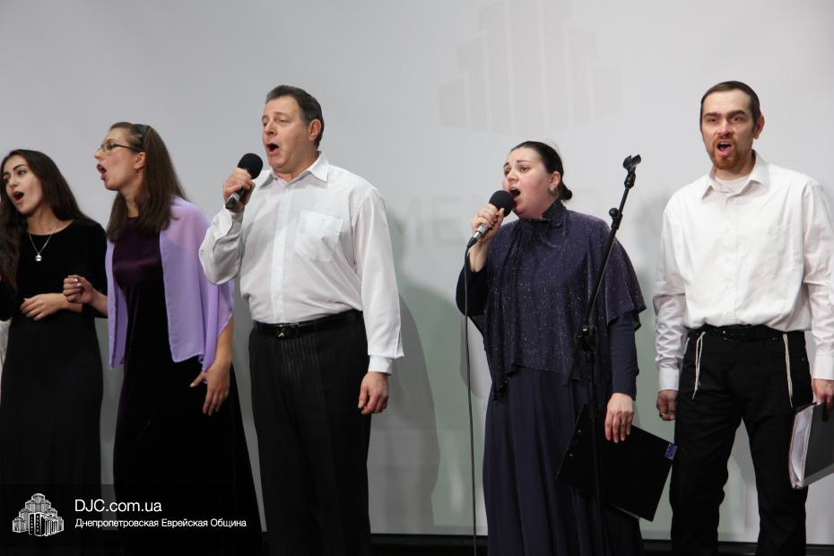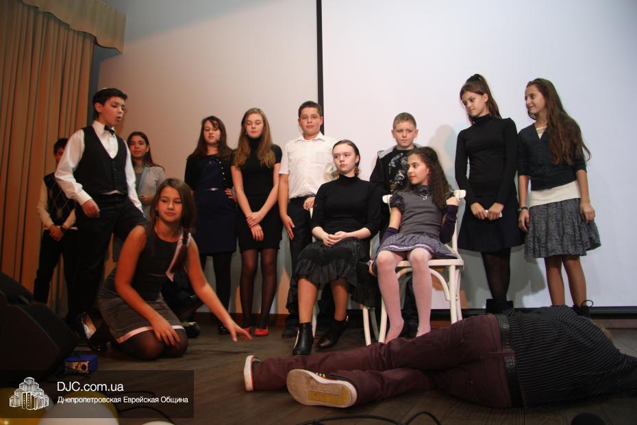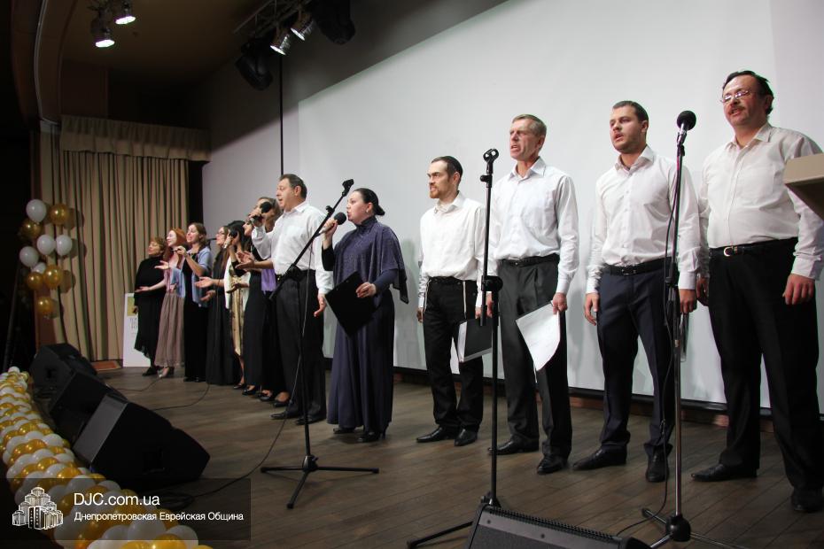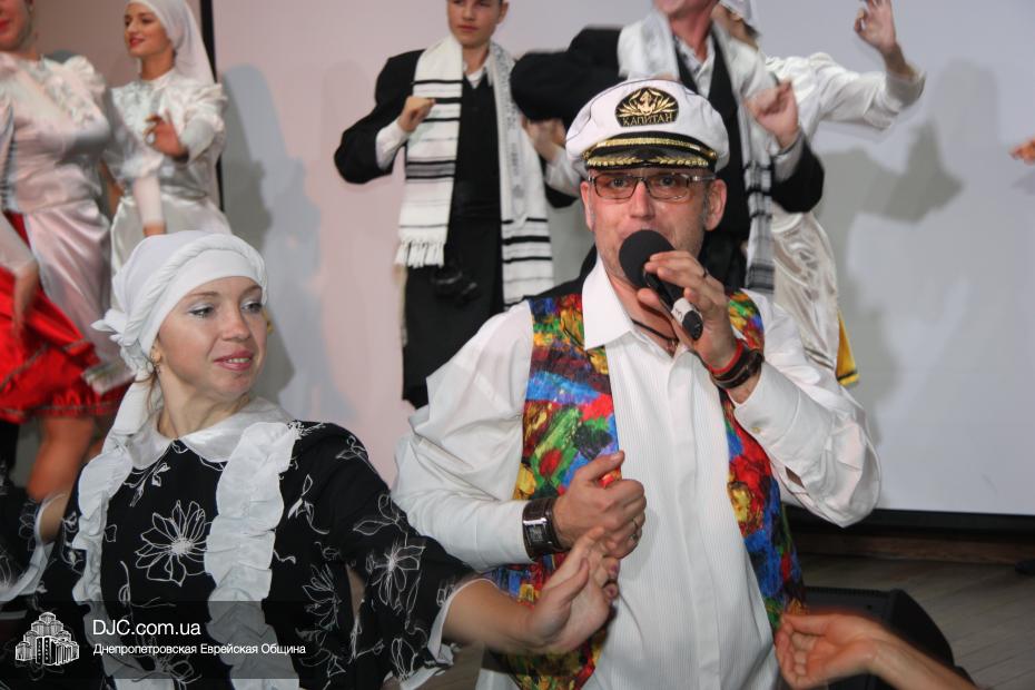 Отдельно следует сказать о концертной программе – она была очень разнообразной и насыщенной: много прекрасных танцев (снова спасибо Мелитополю), много песен (спасибо студии «The Best»), много театральных постановок (театр «Фейгеле» и театр «ТАБу»), но подлинным сюрпризом стал выход на сцену легендарного состава клейзмерского ансамбля «От Озой», который под бурные аплодисменты зала сначала сыграл несколько клейзмерских композиций, а потом объединился с участниками детского коллектива, носящего это прославленное имя, подчеркнув тем самым преемственность и неразрывность истории ЕОЦ на протяжении всех 15 лет.