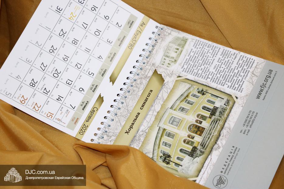 Главной темой календарей ФЕОУ этого года являются синагоги Украины. Все календари выдержаны в едином стиле, бежево-коричневом, с использованием единого графического дизайна, но в двух видах, настольном и настенном перекидном, приведены фотографии 13 украинских синагог и краткие сведения о них (синагог 13, поскольку в календаре есть два сентября, как 2019, так и 2020 года). Быть помещенными в календарь ФЕОУ на 5780 год удостоились следующие синагоги: