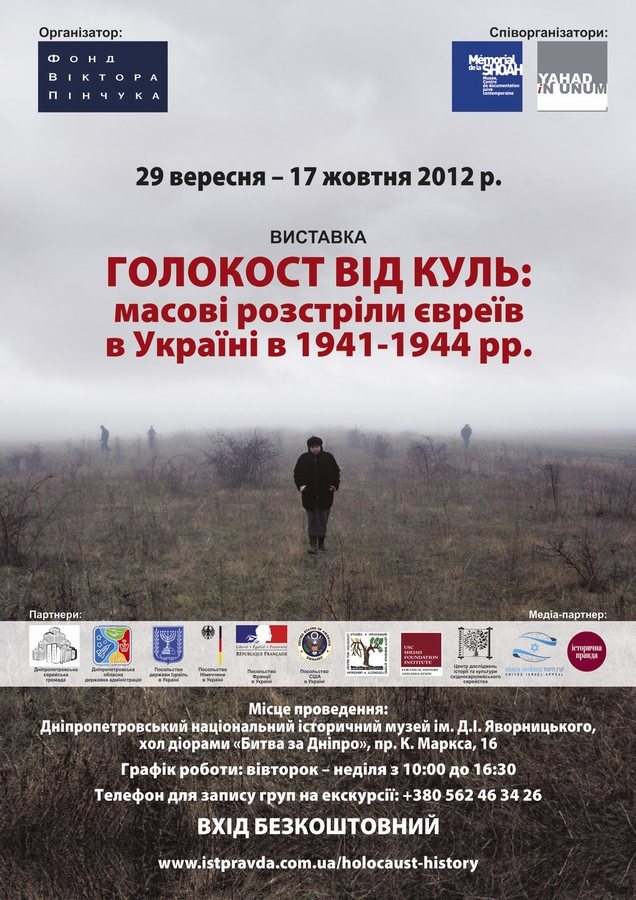 Фонд Виктора Пинчука представляет выставку «Холокост от пуль: массовые расстрелы евреев в Украине 1941-1944» в партнерстве с Мемориалом Шоа (Memorial de la Shoah), организацией «Яхад-Ин Унум» (Yahad – In Unum), Днепропетровской еврейской общиной, Днепропетровской областной государственной администрацией, а также посольствами Израиля, Франции, Германии и Соединенных Штатов Америки в Украине.