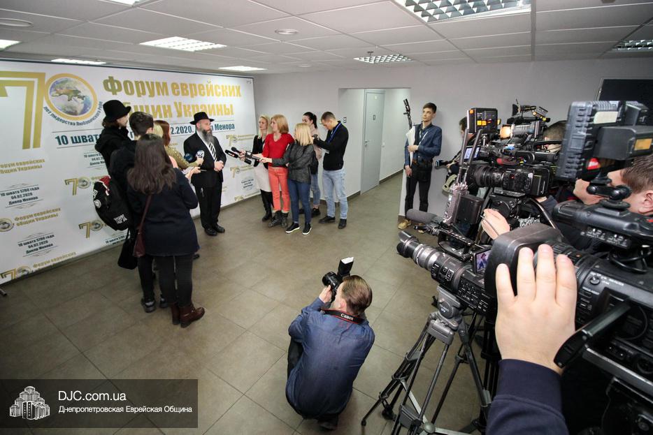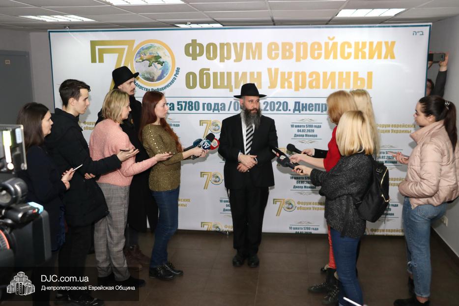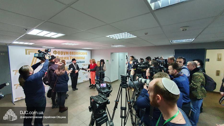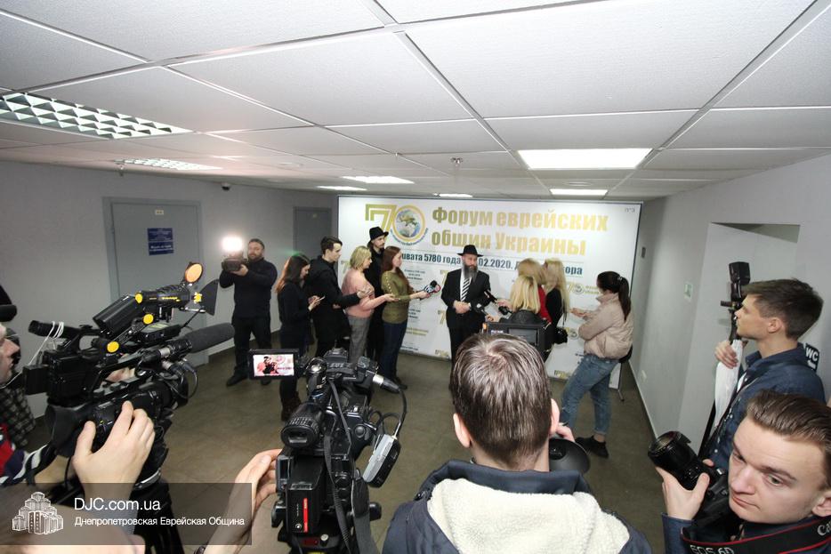 Перед началом официального открытия Форума состоялся подход к прессе руководителей Федерации еврейских общин Украины – раввина Шмуэля Каминецкого, Главного раввина Днепра и региона и Главного раввина Федерации еврейских общин Украины; раввина Меира Стамблера, Председателя Совета Федерации еврейских общин Украины, и Моше (Михаила Юрьевича) Пекарева, одного из лидеров еврейской общины Мариуполя.
