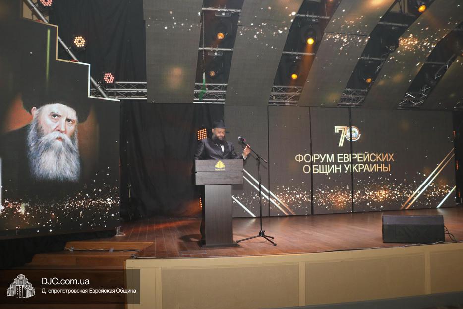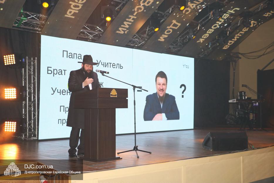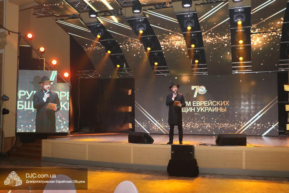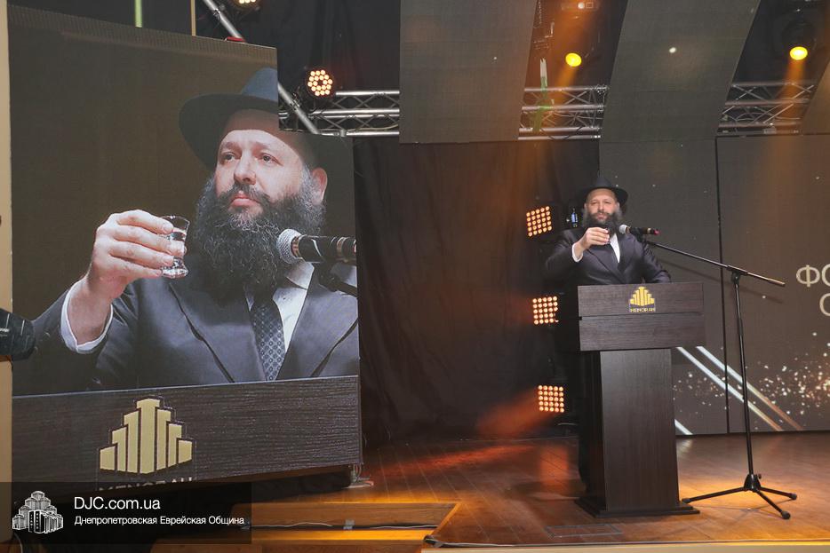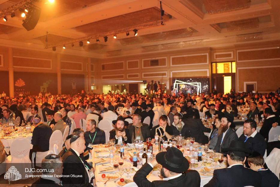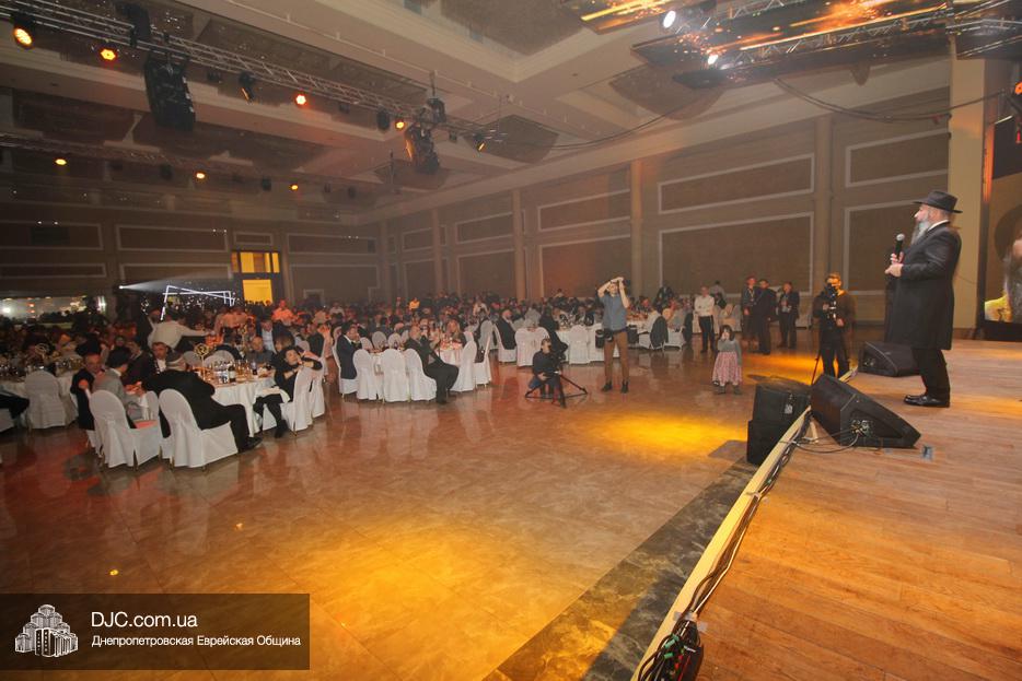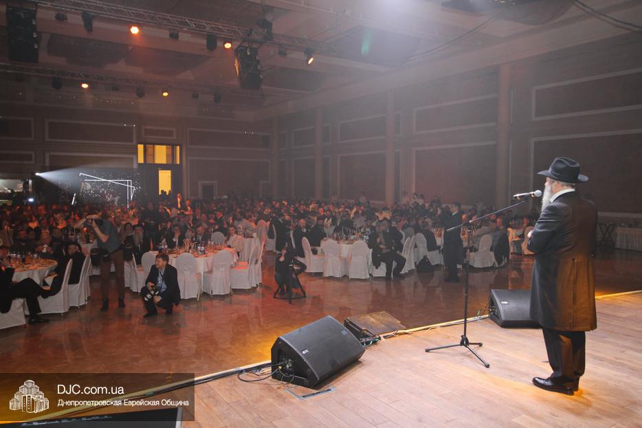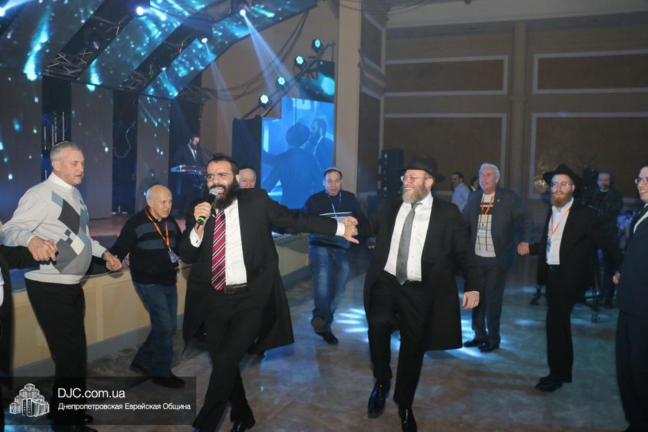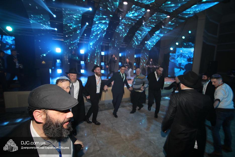 Кульминацией праздника стал выход на сцену всех шалиахов Любавического Ребе, присутствовавших в зале, и их зажигательный танец, а затем раввин Каминецкий выразил глубокую благодарность всем шлухим Ребе в Украине, а особо подчеркнул заслугу комитета объединившегося, чтобы сделать возможным это замечательное событие – Федерации еврейских общин Украины и ее главе раввину Меиру Стамблеру, Председателю правления STL Дану Макогону, руководителю «Колель Тора» раввину Мойше Веберу, главному раввину Кременчуга Шломо Саламону, главному раввину Чернигова Исроэлю Зильберштейну и главному раввину Черновцов Менахему Менделу Глиценштейну. «В этом зале присутствует большая браха и я хочу, чтобы все мы поблагодарили двух людей, которые поверили и сделали очень много для еврейского возрождения, построили центр «Менора» и очень многое для всех нас – Игоря Валериевича Коломойского и Геннадия Борисовича Боголюбова – и просили, чтобы Б-г дал им долгие счастливые годы больших успехов, большое спасибо им, брохе ве-ацлохе», – подчеркнул раввин Каминецкий.