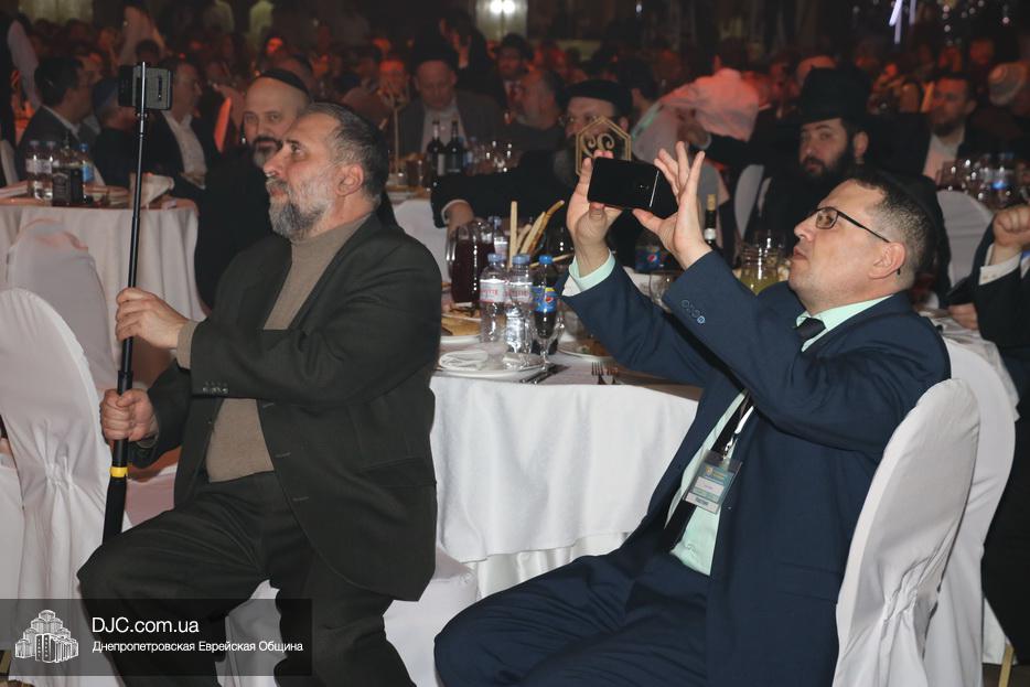 В течение всего вечера звучали прекрасные хасидские песни в исполнении знаменитого хасидского певца Йони Шломо, которому аккомпанировал Эльор Вельнер. Участники гала-банкета с радостью танцевали, выражая переполнявшие их эмоции от участия в столь масштабном и значительном событии.