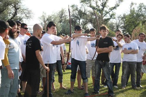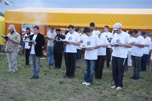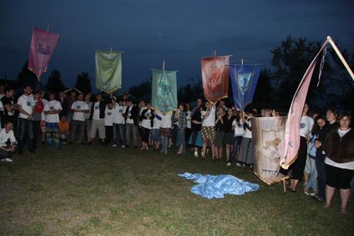 На построении перед началом мероприятия все выстроились со своими штандартами, ибо все студенты были разделены на 12 «колен», подобно потомкам Иакова. О принадлежности к тому или иному «колену» свидетельствовала и майка с символикой слета.