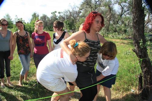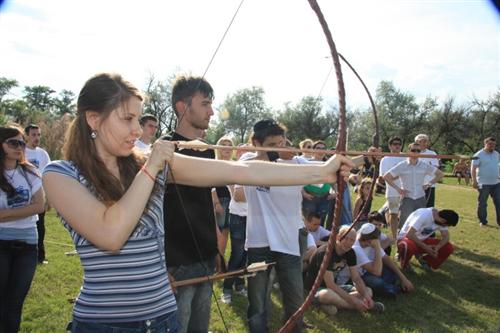 Сдав рапорт о прибытии командующему этой армии Дану Макогону, студенты отправились выполнять лагбаомеровские задания. Здесь надо было и прыгать с помощью тарзанки, и преодолевать, с помощью своих друзей, опасную паутину, и играть в волейбол гигантским мячом, и, конечно же, стрелять из лука.