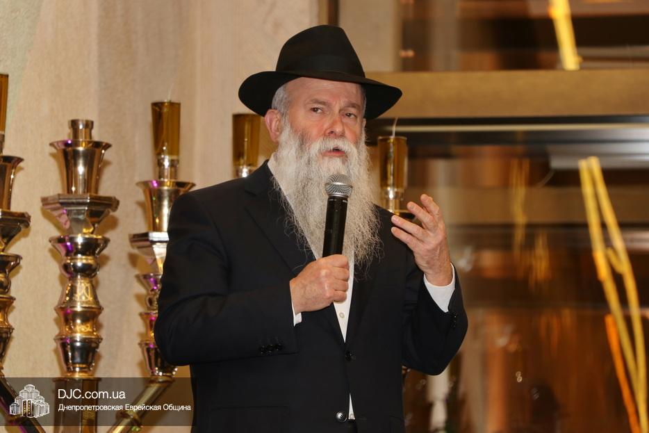 Зажечь семь свечей Хануки Главный раввин Днепра и региона Шмуэль Каминецкий пригласил уважаемого члена общины мера города Самарь (ранее Новомосковска) Давида (Сергея Александровича) Резника. Реб Давид Резник прочитал благословения, зажег свечи и тепло поздравил всех собравшихся с праздником, подчеркнув важножсть распространения света Добра и Победы.
