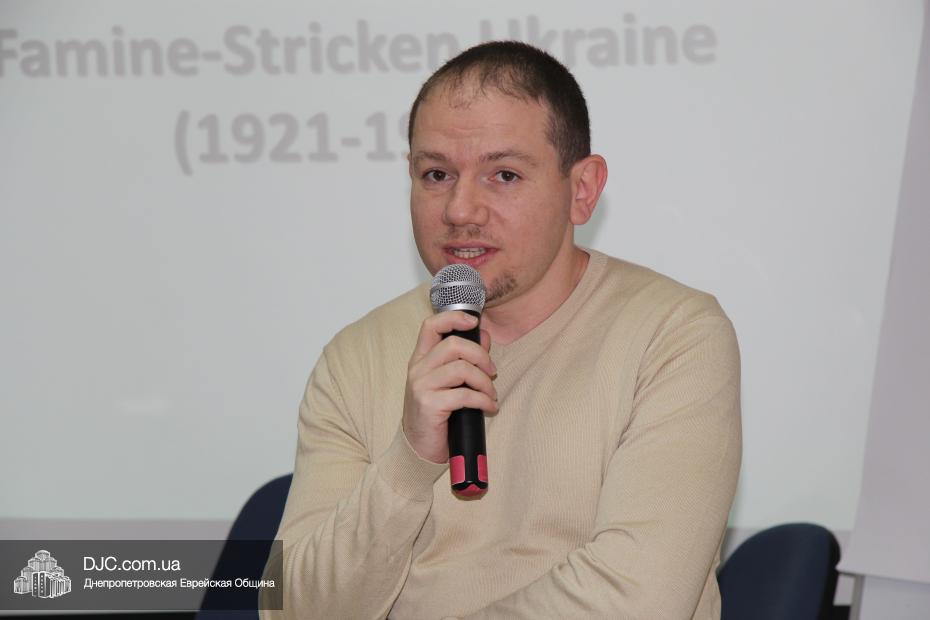 Михаил Мицель, тепло поприветствовав днепропетровское историческое сообщество, представил свою книгу, посвященную этому периоду, и отметил, что этот вопрос достаточно мало освещался в украиноязычной литературе, и основные научные труды на эту тему есть на русском языке, хотя подавляющее большинство исследований сделаны на английском.