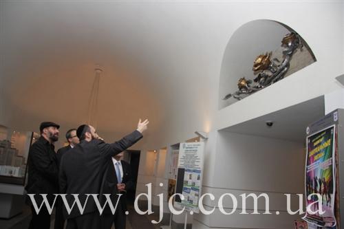 Директор днепропетровской еврейской общины Зелиг Брез рассказал высоким гостям об истории общины и синагоги, о непростом пути еврейского возрождения после обретения Украиной независимости, о том почему именно Днепропетровск признан лидером и столицей еврейской жизни в Украине и на постсоветском пространстве, и о том международном авторитете, которым сейчас пользуется община.