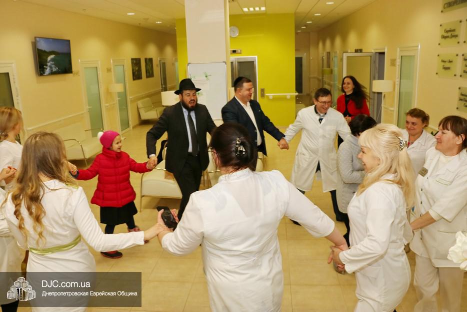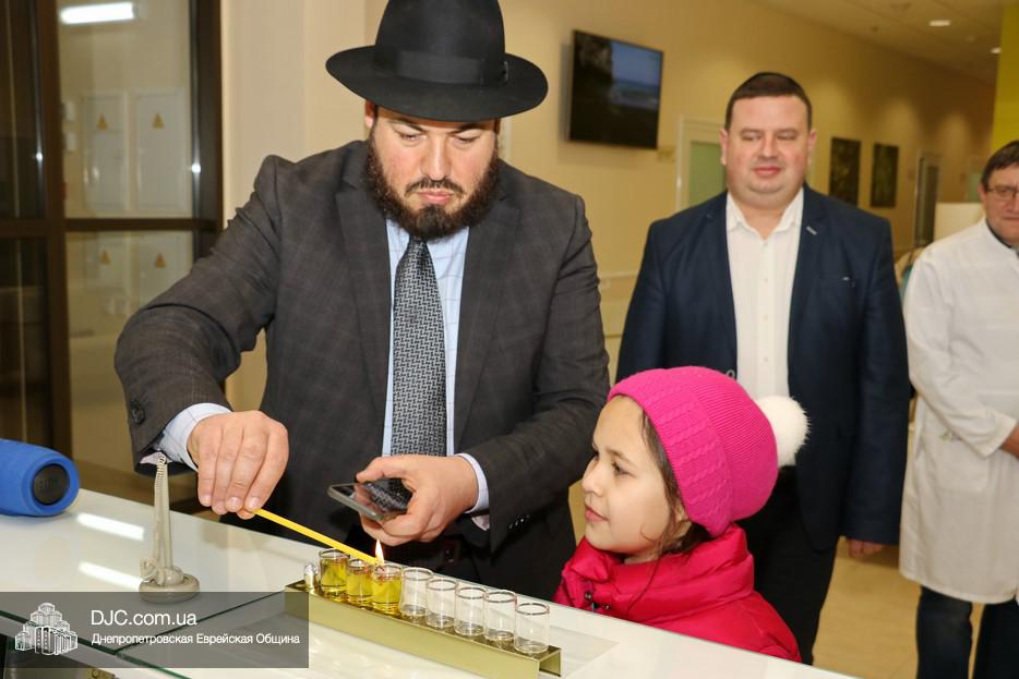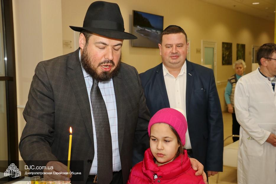 Третью свечу Хануки зажег человек тесно и неразрывно связанный с JMC, его друг и партнер – Главный моэль Украины и Молдовы, официальный представитель организации «Брит Иосиф Ицхак», раввин Яков Гайсинович. Он прочитал благословения и зажег светильник, а затем порадовал врачей и медицинских работников Центра веселыми ханукальными песнопениями в исполнении Авраама Фрида.