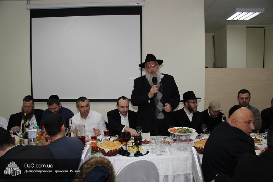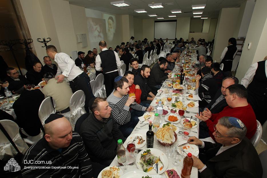 Организационные хлопоты взяли на себя активисты общины и меценаты многих мероприятий – братья Давид и Беньомин Духовные, а главным спикером на это мероприятие руководитель программы «Колель Тора» раввин Мойше Лейб Вебер пригласил гостя общины, известного машпию из Краун-Хайтс (Нью-Йорк, США) раввина Шломо Гальперина. Фарбренген проходил в зале «На Троицкой», и в нем приняло участие почти сто пятьдесят членов общины.