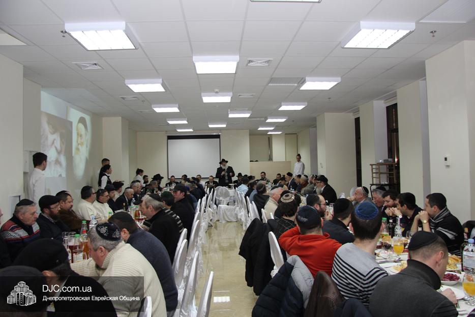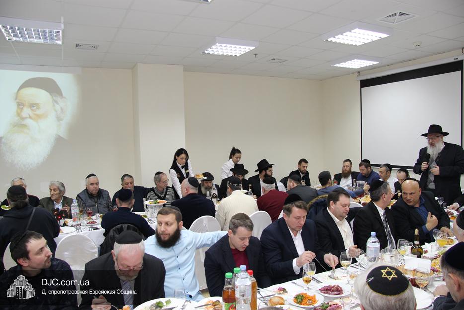 В честь Дня 19 кислева – 218-ой годовщины со дня освобождения основателя Любавического хасидизма Альтер Ребе, рабби Шнеура-Залмана из Ляд, из российской тюрьмы, которая отмечается как Новый год хасидизма – в Днепре состоялось множество фарбренгенов и мероприятий. Главный мужской фарбренген, организованный общиной, состоялся в центре «Менора».