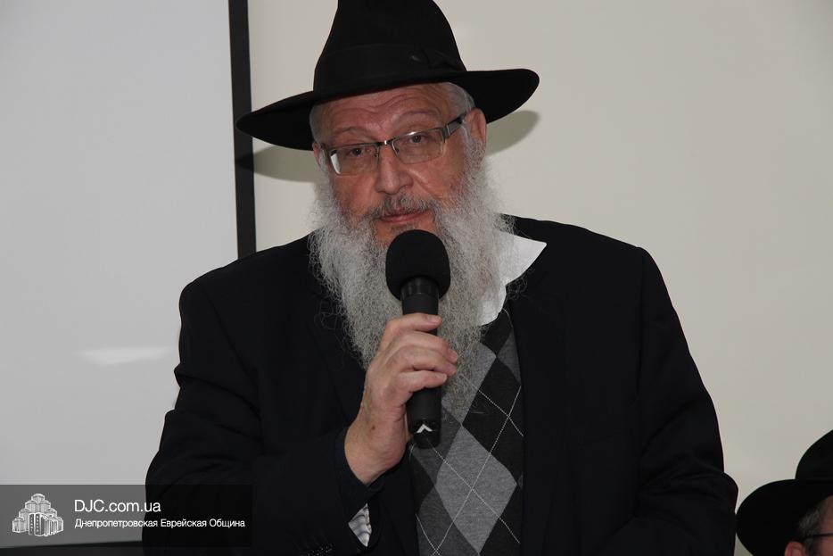 Раввин Мойше Вебер представил уважаемого гостя, рассказал о его жизненном пути и особо остановился на подобии и различии между Днем 19 кислева и 10 тишрея, то есть между Новым годом хасидизма и Йом Кипуром.