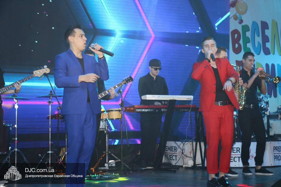Первым на празднике выступил коллектив «Premier Project» с большой программой ностальгических песен – здесь были и рок&роллы, и песни из репертуара Адриано Челентано, группы «Земляне», Юрия Антонова и многих других. Выступление этого коллектива стало подарком еврейской общине от Президента международного фонда «Солидарность» Александра Петровского.