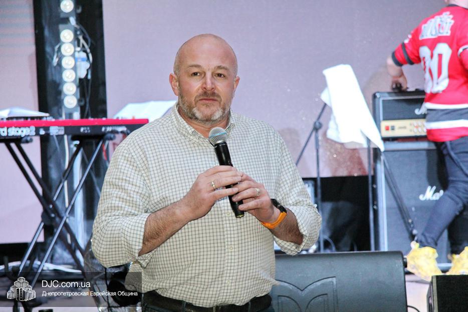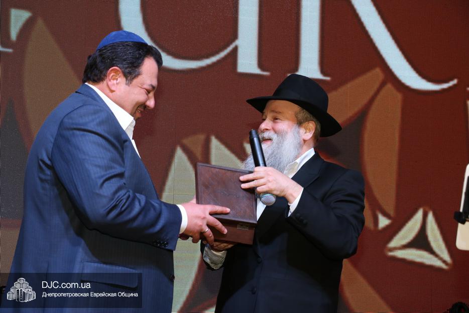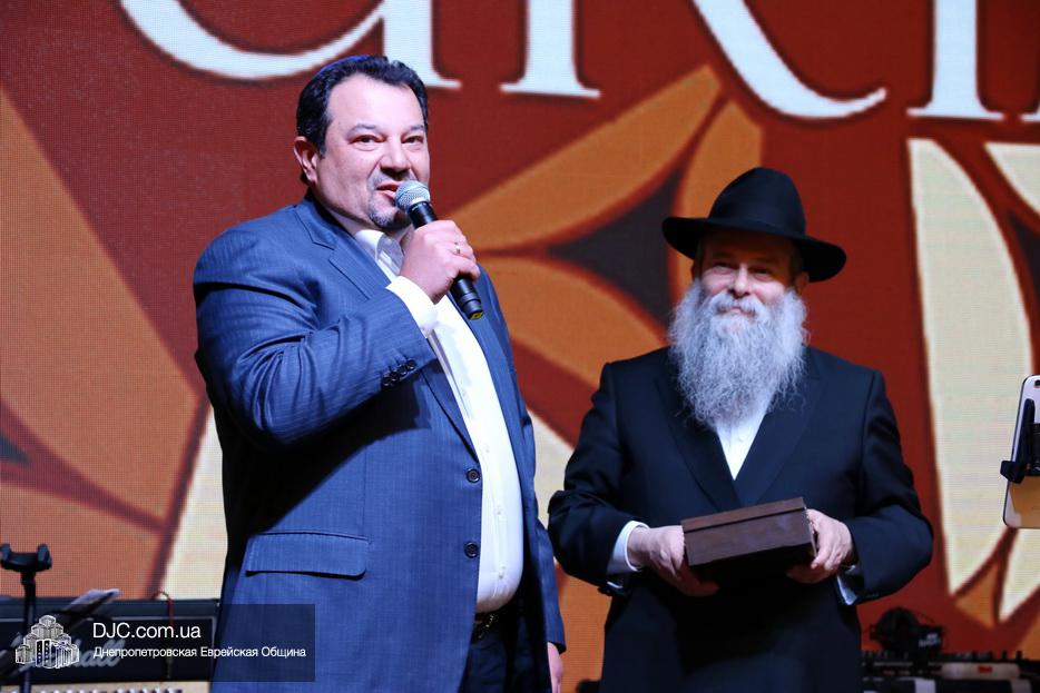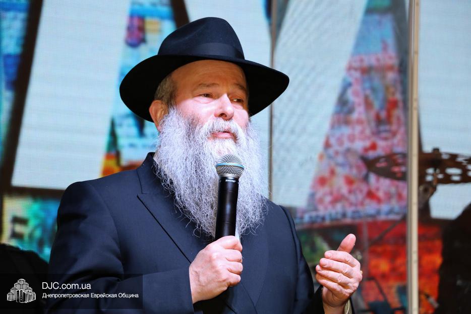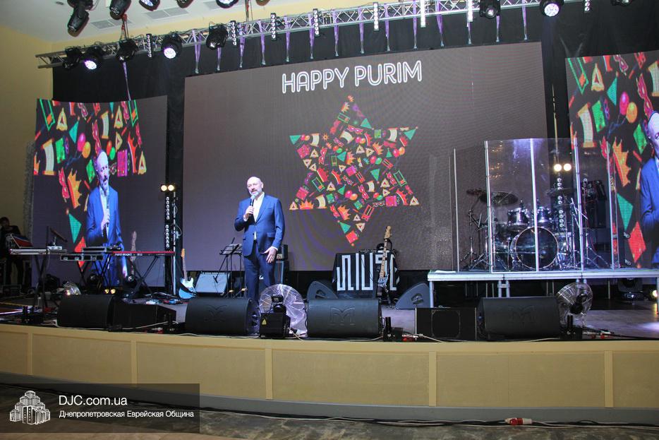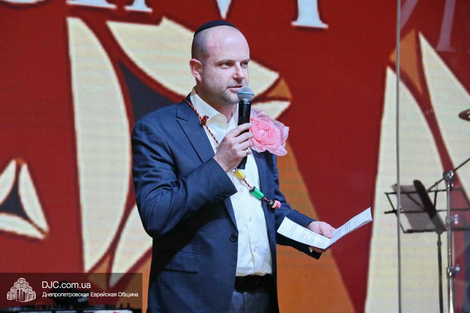 Затем, почти тысячу евреев Днепра, которые пришли на праздник, тепло поздравили Главный раввин Днепра и региона Шмуэль Каминецкий и Президент еврейской общины Днепра Цви Гирш бен Борух (Геннадий Борисович) Боголюбов. Была выражена глубокая благодарность члену Попечительского Совета общины Виталию Ратушному и его супруге Ирине, которые много лет подряд берут на себя миссию организовать для всей общины грандиозный пуримский праздник и подарить всем безграничное веселье, что в общине их давно называют «Мистер и Мисс Пурим». Раввин Каминецкий, от имени всех евреев Днепра, преподнес Виталию Ратушному памятный подарок в знак глубокой признательности за его труд на благо общины и во имя исполнения заповедей Пурима.
