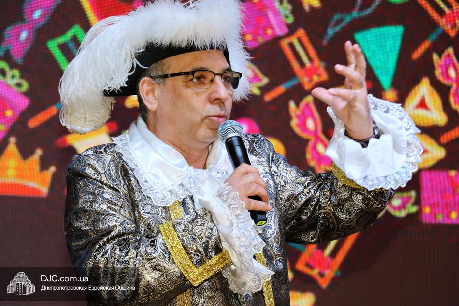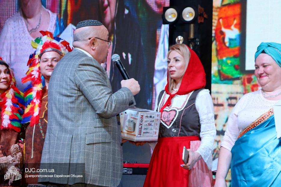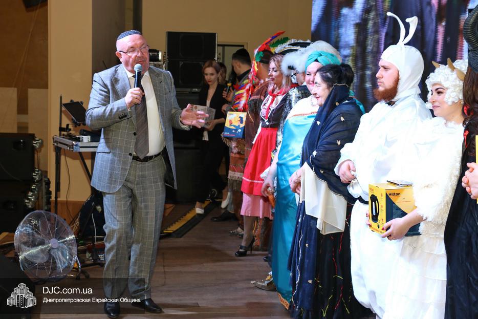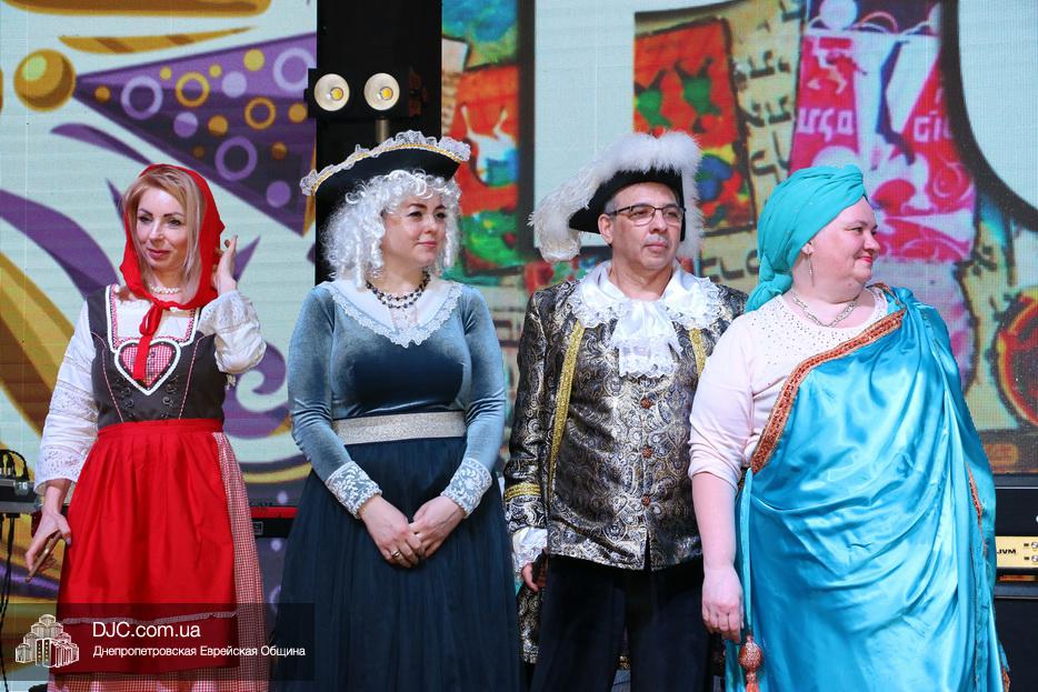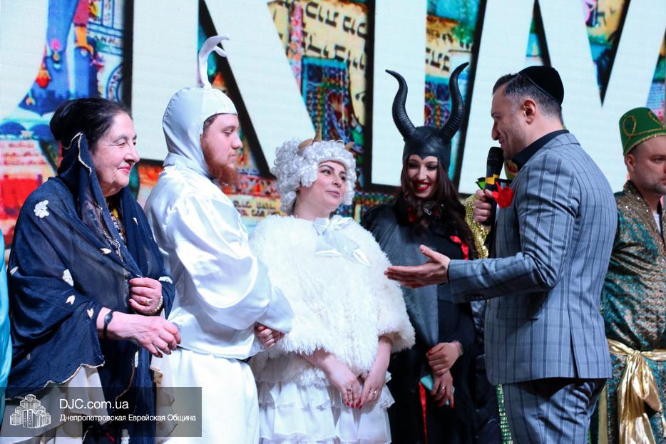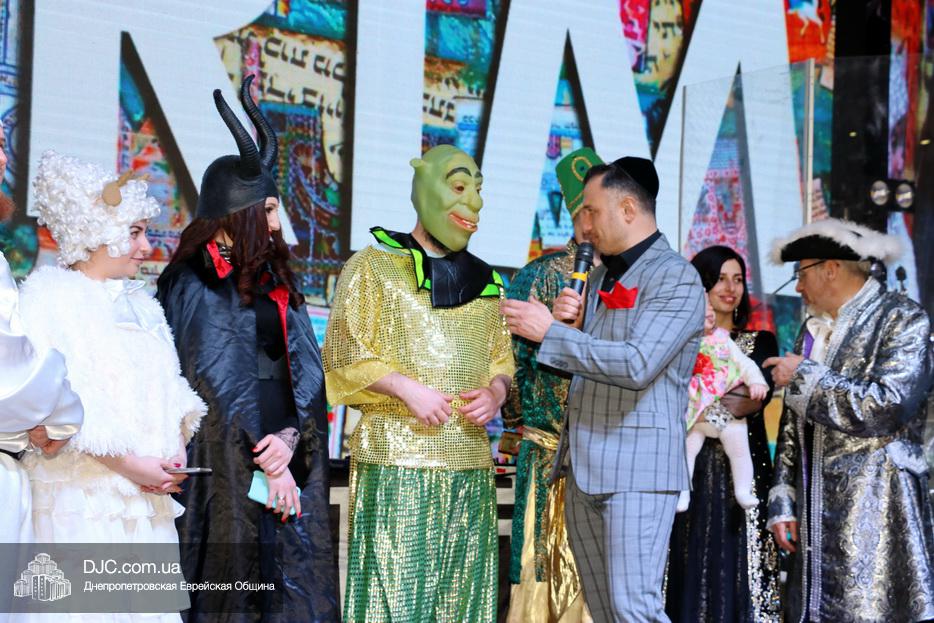 Непременной частью Главных Пуримов еврейской общины Днепра является конкурс карнавальных костюмов, который, традиционно с неизменным шармом и обаянием, по поручению общины, блестяще проводит Федор Иванович Грищев. Как всегда был детский и взрослый конкурс и каждый представил свой костюм, и объяснил свой образ, а наиболее оригинальные и мотивированные персонажи получили призы.