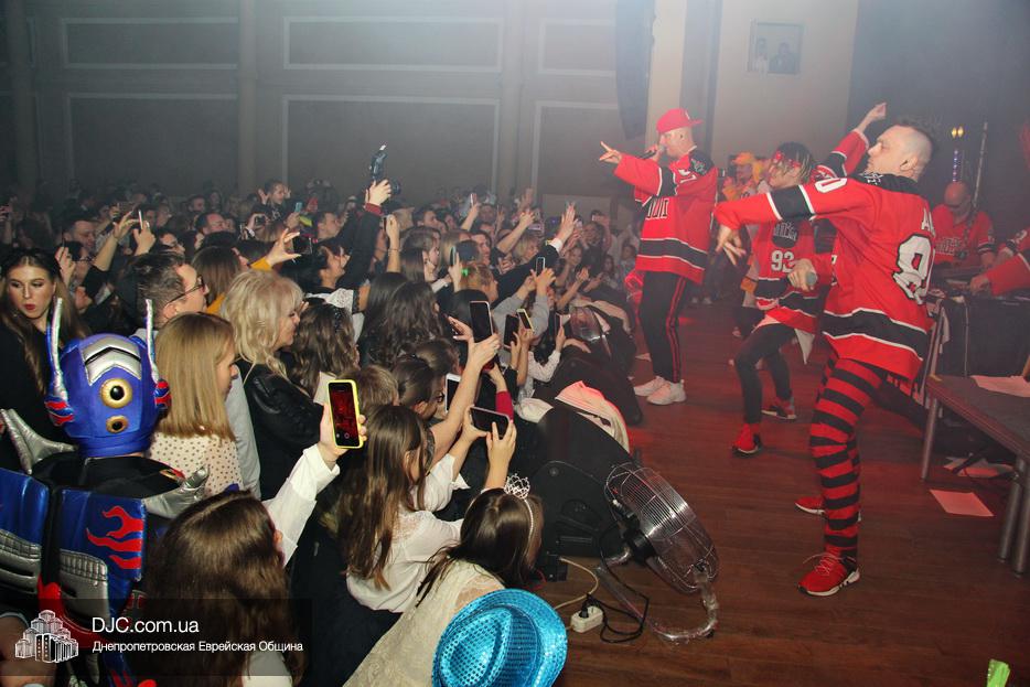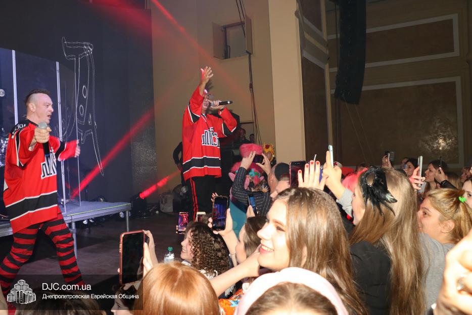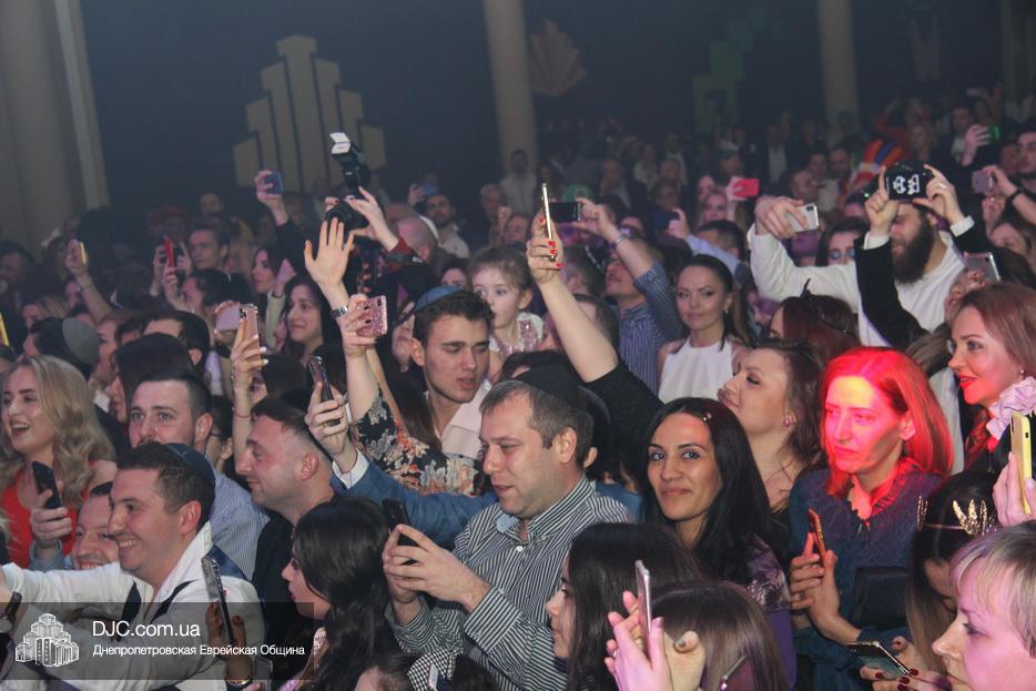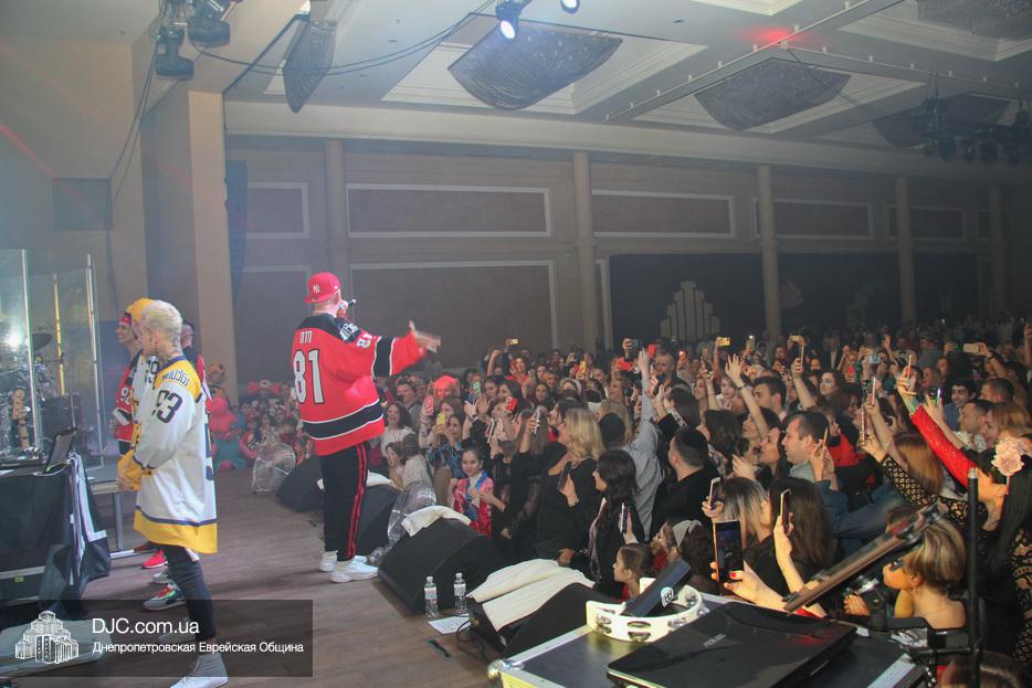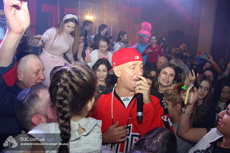 Атмосферу Пурима создавал ансамбль «Хорошее настроение», который исполнял популярные хиты прошлых лет и акробатический коллектив, порадовавший зрителей особыми хореографическими этюдами. Большую радость участникам праздника доставило выступление восходящей звезды еврейской эстрады Украины Евы Шрайбман, дочери члена Попечительского Совета еврейской общины Днепра Александра Ефимовича Шрайбмана.
