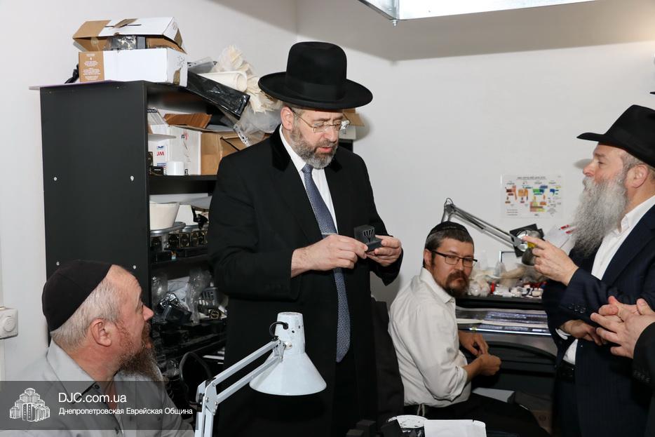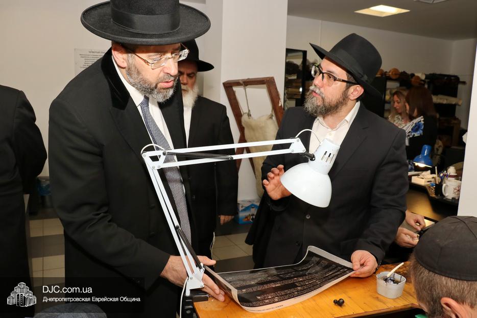 Глава департамента кошрута и софрута еврейской общины Днепра раввин Элиша Барам представил Главному раввину Израиля сойферов, которые создают, реставрируют и проверяют предметы сойферского искусства, рассказал о том, как в Днепре создавался центр софрута, каких успехов он добился за годы существования и как он использует новейшие технологии при полном и доскональном соблюдении традиций в столь важной в религиозном отношении области как софрут.