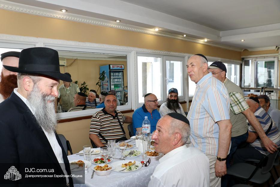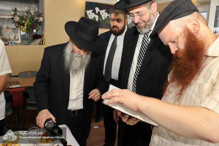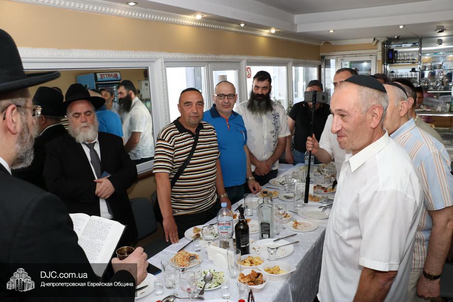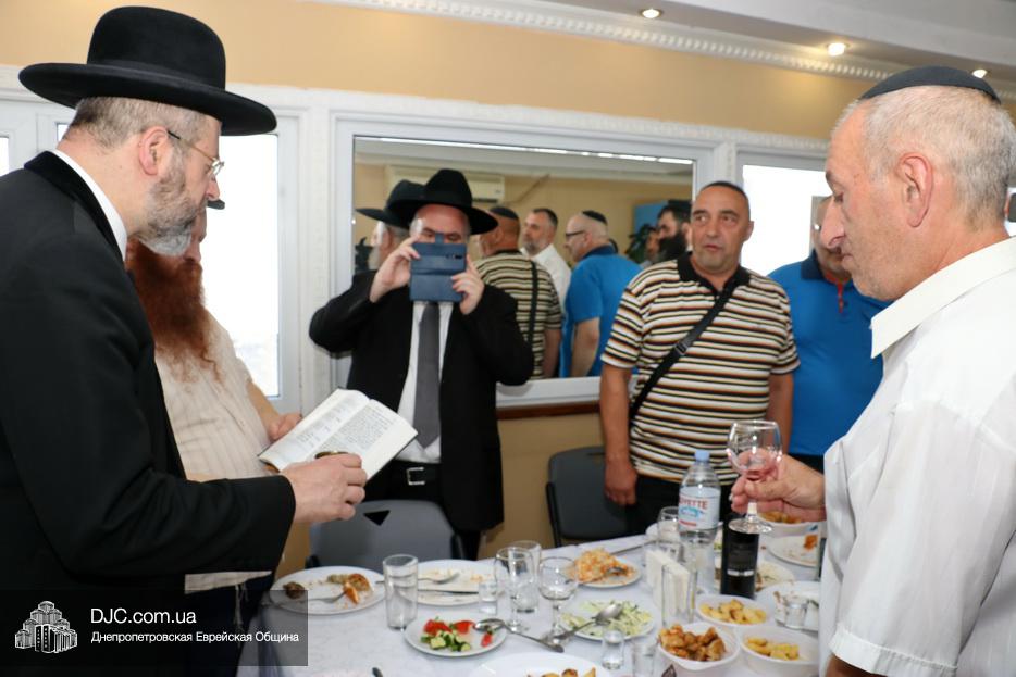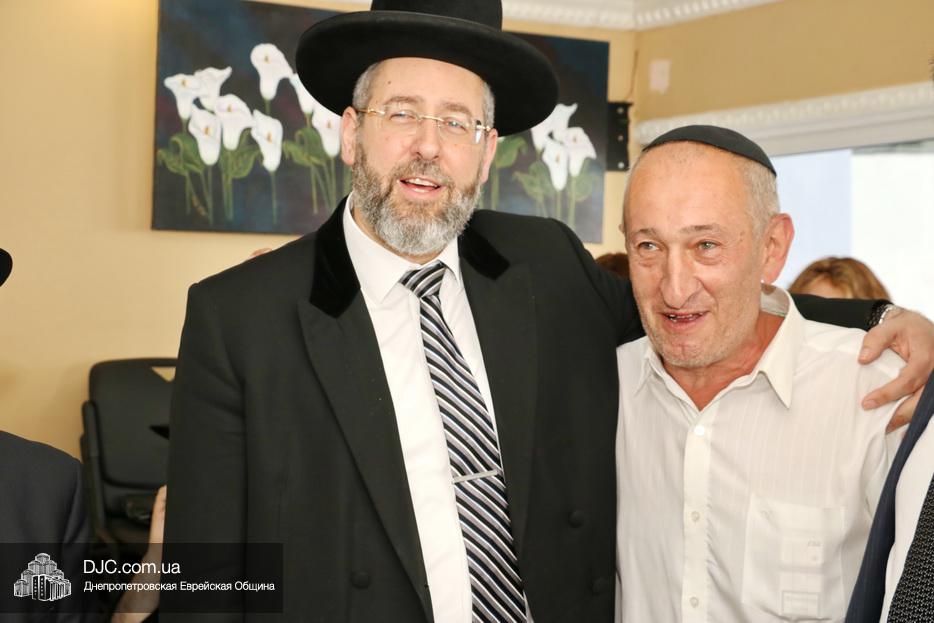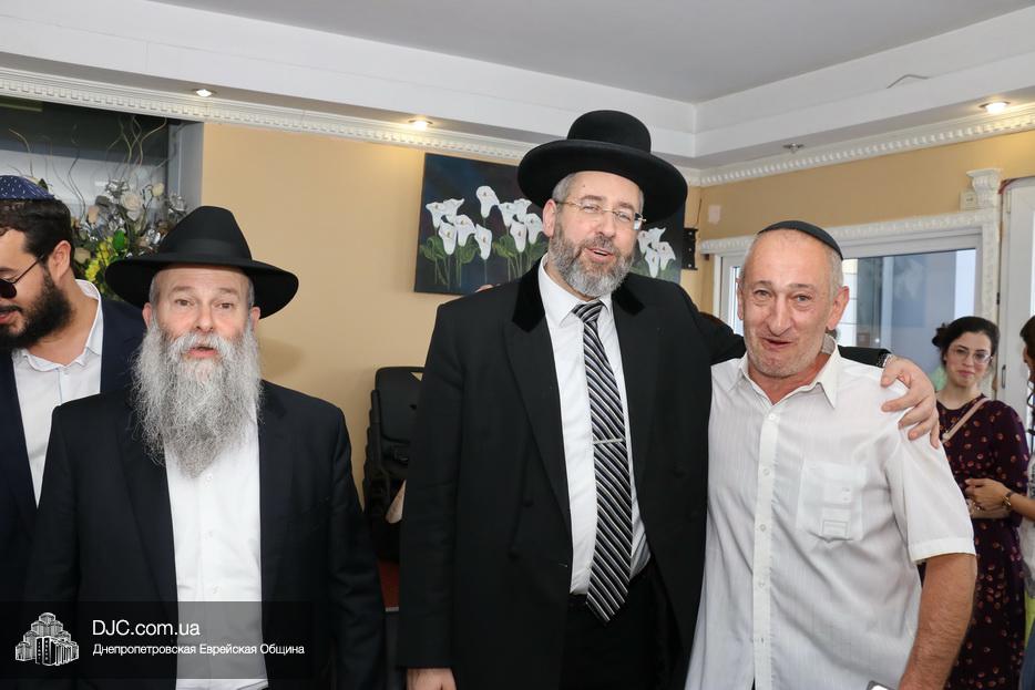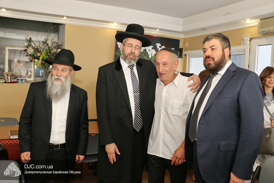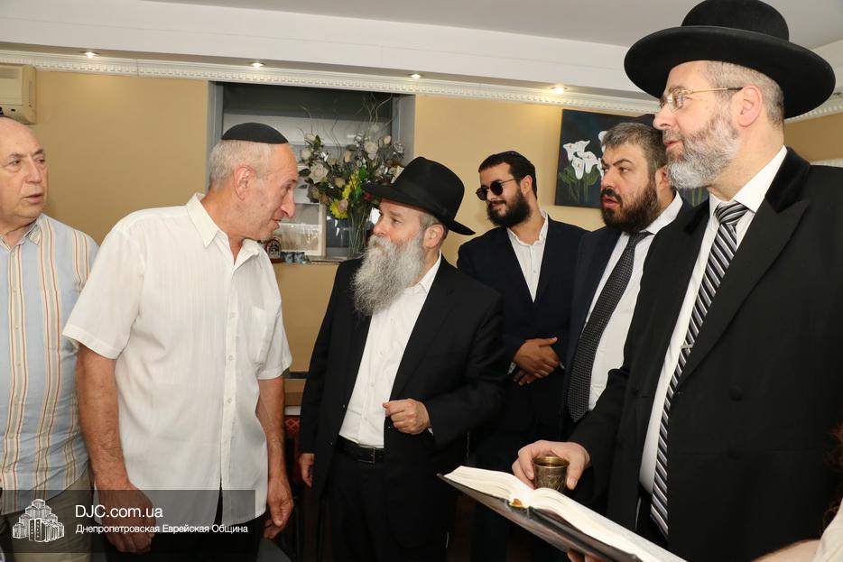 В рамках своего визита в Днепр, Главный раввин Израиля Давид Лау принял участие в обряде брит-мила и стал сандаком у шестидесятилетнего прихожанина синагоги «Золотая Роза» Александра Ефимовича Рабиновича.
