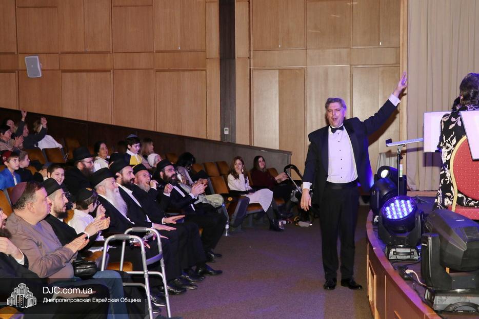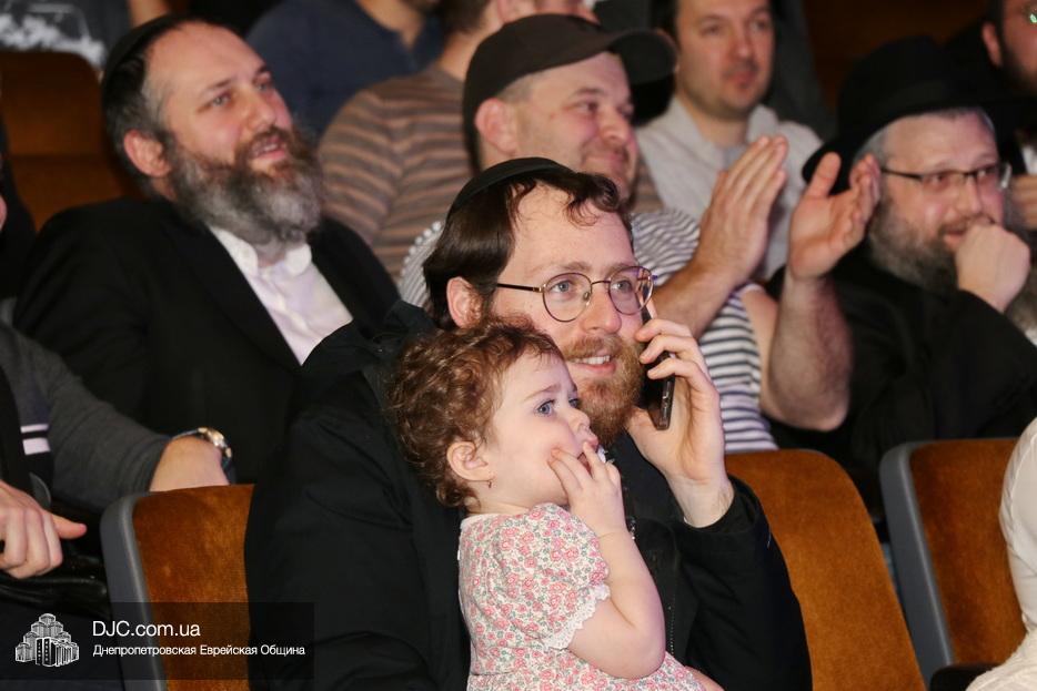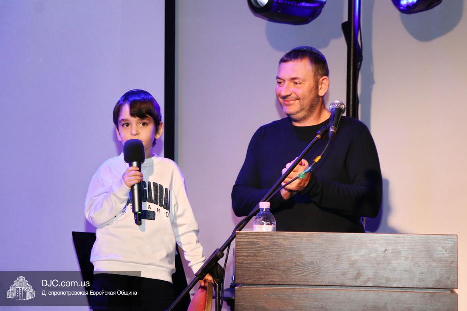 Далее зрителей ожидал большой сюрприз – юный Леви Золотаревский вдохновенно исполнил известную патриотическую песню «Я – Україна» и ему подпевал весь зал, а по окончании наградил замечательного исполнителя бурными аплодисментами. Отец Леви, член Попечительского Совета Еврейской общины Днепра, Натан Золотаревский рассказал о масштабных планах развития еврейской инфраструктуры в Днепре и о важных событиях, которые ожидаются до Рош а-Шана.