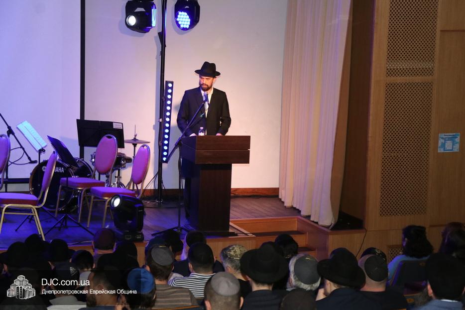 Открыл праздник Главный раввин Днепра и региона Шмуэль Каминецкий, который призвал усиливать в распространении света хасидизма и прежде всего в поиске новых евреев, которые пока еще не участвуют в жизни общины. Раввин Каминецкий рассказал о успешных примерах работы в этом направлении и предложил каждому присутствующему оглядеться вокруг себя, найти таких евреев в своем окружении и предпринять усилия, чтобы они как можно быстрее стали частью общины, чего, безусловно, хочет душа каждого их них, и ей нужно только оказать помощь.