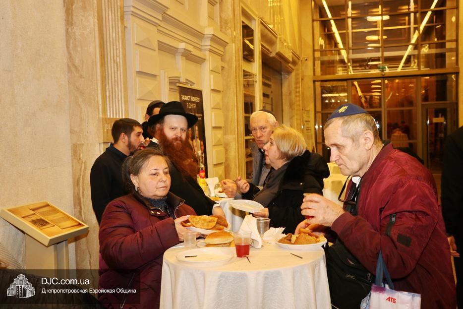 По окончании мероприятия, организованного благодаря Еврейской общине Днепра и всестороннему участию раввина Мойше Лейб Вебера и ребецн Шошанны Вебер, всех участников ожидали приятные сюрпризы – наборы к празднику Ханука, еврейские книги и атрибутика, а в Галерее центра «Менора» большое праздничное угощение. А для детей была организованна большая программа в зале центральной синагоги «Золотая Роза».