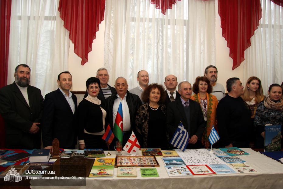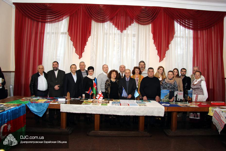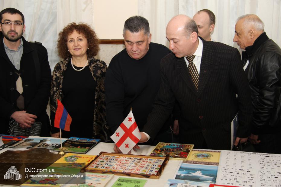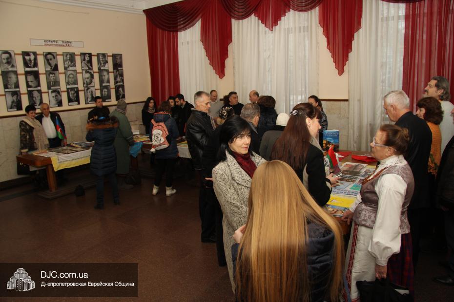 В фойе была развернута выставка, представившая разнообразие культур многонациональной Днепропетровщины – здесь были и учебники языков различных этнических групп, и исторические исследования, и поэзия, и художественные альбомы. Представители различных национально-культурных объединений с удовольствием общались между собой, фотографировались, демонстрируя мир и согласие различных этно-конфессиональных групп, входящих в единый многонациональный украинский народ.