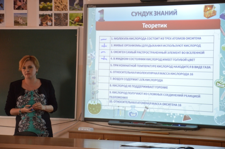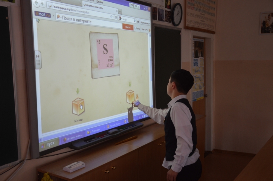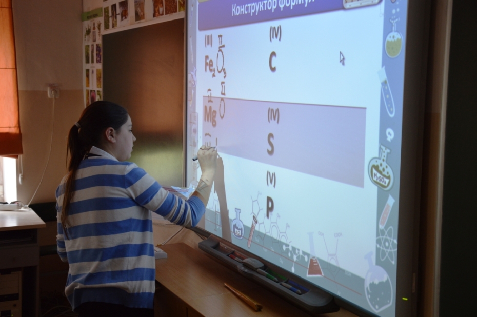 Вторая часть семинара началась открытым уроком химии в 7-б классе по теме «Генеральная уборка» (нестандартное название для урока повторения и обобщения учебного материала), который провела Татьяна Хавкина. На уроке учитель продемонстрировала различные формы и методы организации повторения и обобщения, с использованием мультимедийных возможностей кабинета и школы. Были показаны возможности использования интерактивной доски, продемонстрированы преимущества свободного доступа в интернет. На уроке использовалось online-тестирование в системе «Learning Apps», в которой учитель и ученики могут создавать различные тренировочные тесты. В конце урока ребятам было предложено создать макет страницы учебника химии. Ребята высказали идею о том, что современный учебник должен быть электронным, интерактивным, наполненным полезной информацией и ссылками на видео химических экспериментов. В качестве домашнего задания ребятам было поручено создать электронную страницу учебника в программе «cacoo.com», с которой ребята уже начали знакомство на уроках информатики.