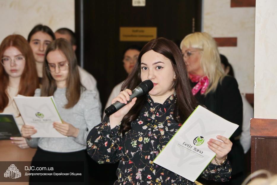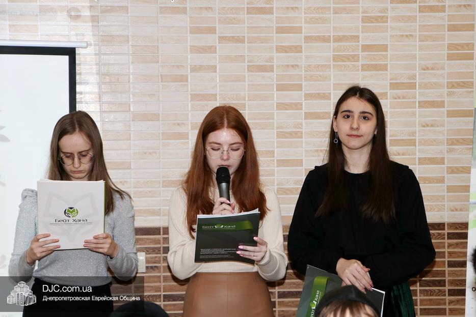 Со словами приветствий и поздравлений на встрече выступили: директор БФ «Хесед Менахем» Олег Ростовцев; программный координатор регионального офиса «Американского Еврейского Объединенного Распределительного комитета «Джоинт» Кира Пивоварова; ректор Международного гуманитарно-педагогического института «Бейт Хана» Римма Аронова; координатор образовательных программ Ресурсного Центра «Маале» Виктория Пинькас и координатор проекта Еврейской общины Днепра «Тнуат а-Нефеш» Дмитрий Грунский.